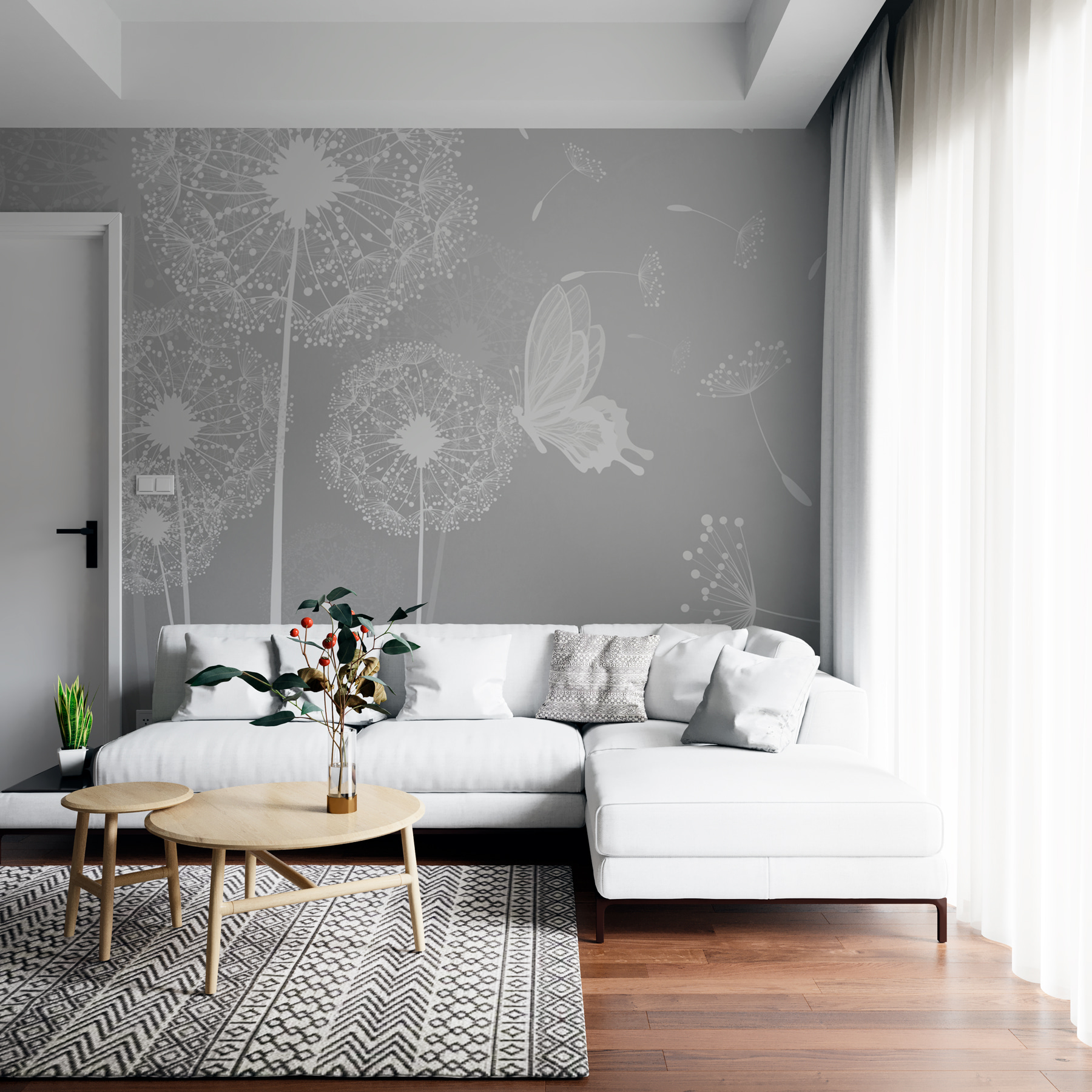 Představte si toto: Představte si, že ležíte v obývacím pokoji se šálkem čaje v ruce a váš pohled se přesune na stěnu, kde vás přivítá pohled na rozmarné pampelišky a třepotající se motýly. Tato nástěnná malba s půvabným názvem “Bílé pampelišky s poletujícími motýly” promění váš prostor ve vzdušné a klidné útočiště. Křehké pampelišky s těmito zasněnými motýly dodají nádech kouzla přírody přímo v interiéru. Jsou ideální pro všechny milovníky přírody toužící po troše klidné krásy – změní pravidla hry. Je to jako jemný, bezstarostný den strávený venku, ale v pohodlí domova. Útulné a podmanivé – skutečný zlepšovač nálady. Ponořte se do relaxace pokaždé, když je zahlédnete, a možná si dokonce přejte pampelišku!