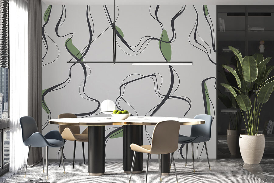 Napadlo vás někdy, že by vaše stěny mohly mít větší šmrnc? Podívejte se na tento skvělý “Zeleno-černý design nástěnných maleb”. Je to jako vnést do svého domova dotek přírody a umění jedním rychlým pohybem. Směs abstraktních linií a náznaků listů vás zaujme pokaždé, když půjdete kolem. Představte si, že popíjíte ranní kávu s touto krásou na stěně – je v tom něco uklidňujícího a zároveň povzbuzujícího. Je ideální pro ty, kteří milují moderní, designové vibrace, ale přesto chtějí trochu přikývnout na přírodu. Naprostý začátek konverzace – vaši přátelé se na něj budou ptát, to vám zaručuji!