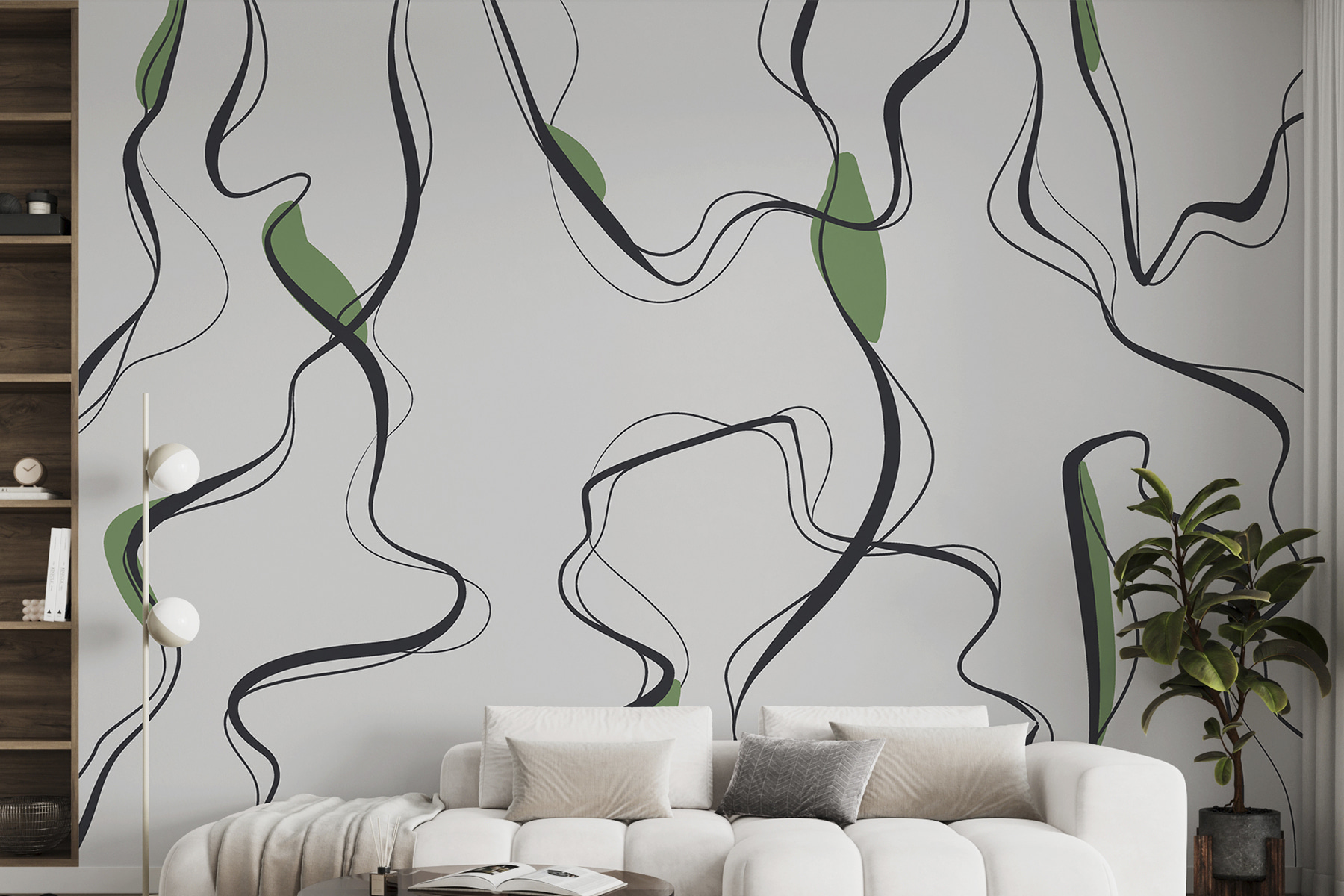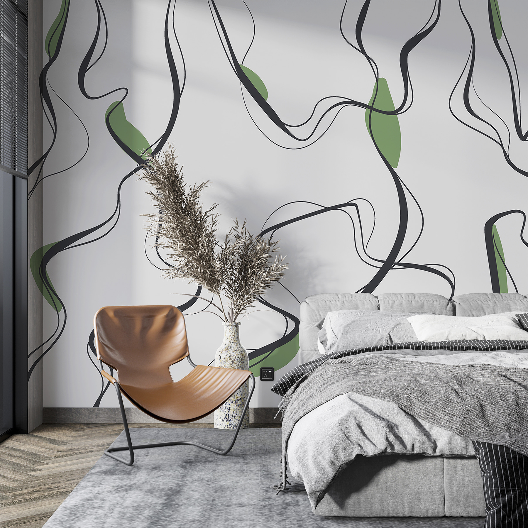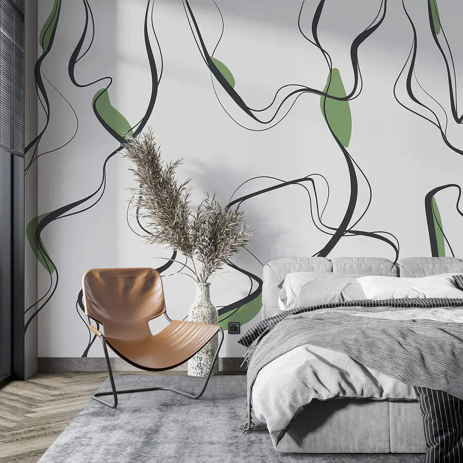 Napadlo vás někdy, že by vaše stěny mohly mít větší šmrnc? Podívejte se na tento skvělý “Zeleno-černý design nástěnných maleb”. Je to jako vnést do svého domova dotek přírody a umění jedním rychlým pohybem. Směs abstraktních linií a náznaků listů vás zaujme pokaždé, když půjdete kolem. Představte si, že popíjíte ranní kávu s touto krásou na stěně – je v tom něco uklidňujícího a zároveň povzbuzujícího. Je ideální pro ty, kteří milují moderní, designové vibrace, ale přesto chtějí trochu přikývnout na přírodu. Naprostý začátek konverzace – vaši přátelé se na něj budou ptát, to vám zaručuji!