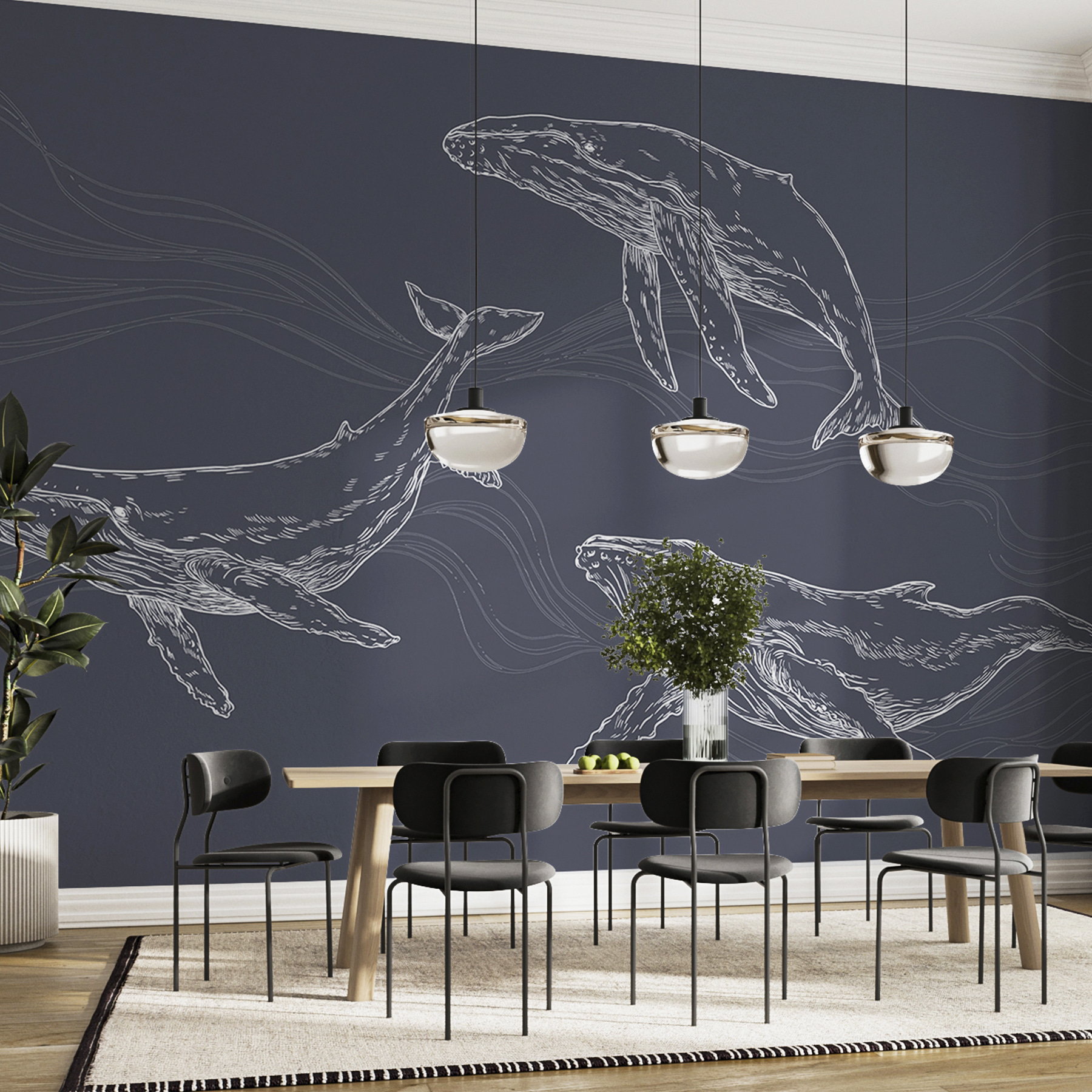 Představte si, že vejdete do místnosti a přivítá vás majestátní skupina velryb, které ladně plavou po stěně. Přesně takovou atmosféru přináší tato nástěnná malba – uklidňující, ale zároveň trochu dobrodružná. Ideální do každého prostoru, který potřebuje trochu kouzla oceánu. Víte, velryby nejen plavou, ale i plachtí. Tato nástěnná malba zachycuje tuto eleganci a oživí vaše stěny. Perfektně se hodí do místnosti s plážovou tematikou nebo prostě jen dodá dotek moře tam, kde to nejméně čekáte. Navíc ty jemné linie a vlny… čiré umělecké blaho! Ponořte se a nechte tyto nádherné tvory proměnit váš prostor v podmořské útočiště.