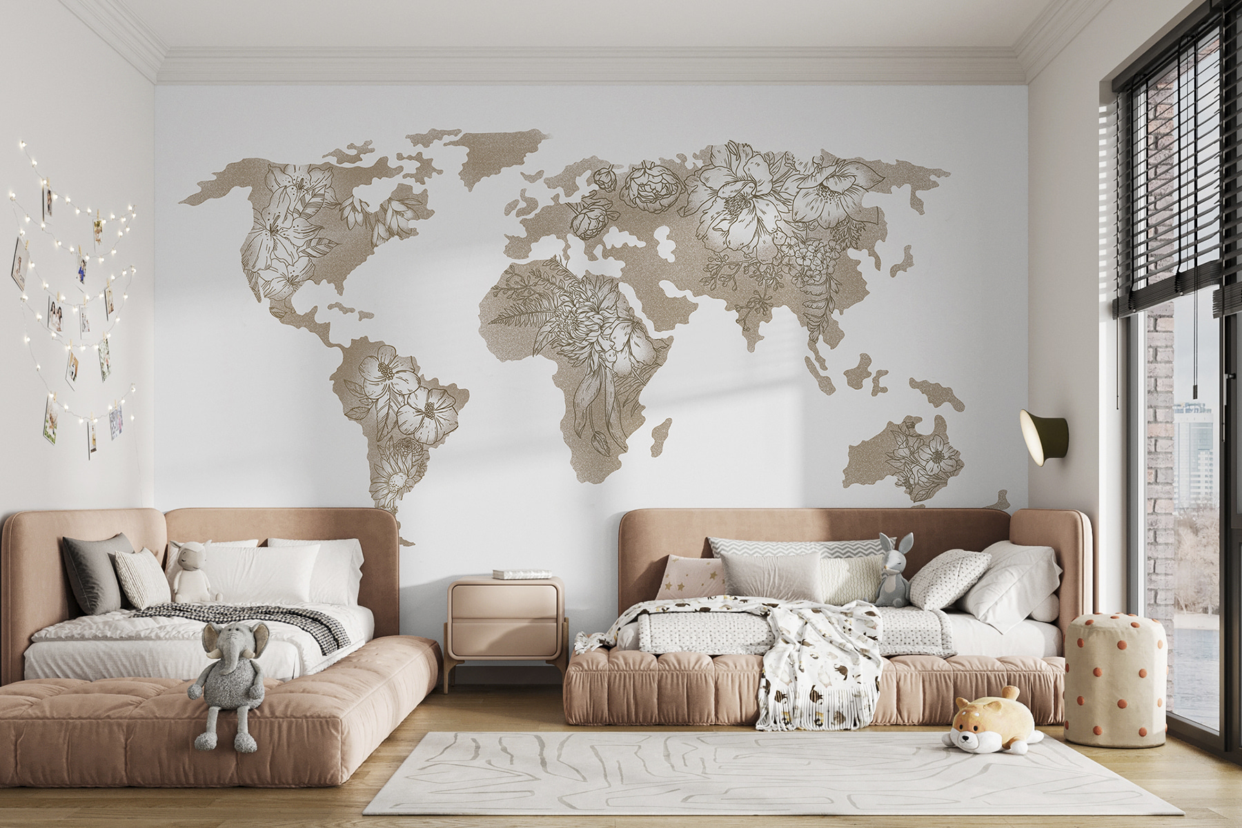 Máte doma malého světoběžníka nebo jen milujete jedinečné dekorace? Podívejte se na tuto nástěnnou malbu “Mapa světa”. Není to typická mapa – myslete na to, že země se setkává s květinovým uměním! Představte si, jak vaše děti při pohledu na tuto krásu na zdi sní o dobrodružstvích po celém světě. Na kontinentech jsou vyobrazeny ostré botanické detaily, takže zeměpis vypadá jako umělecká galerie. Ideální do dětského pokoje nebo do jakéhokoli prostoru, kde se potkává dotek přírody s toulkami. Vážně, je to poutač na oči a podnět ke konverzaci v jednom. Perfektní k podnícení zvědavosti nebo k projevení lásky ke světu tím nejelegantnějším, uměleckým způsobem!