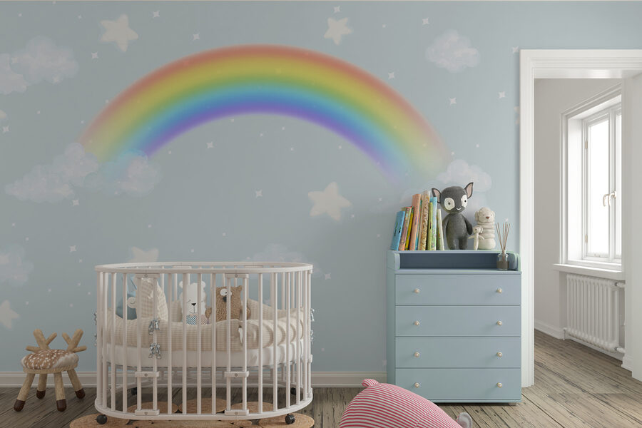 Tato nástěnná malba nejen dobře vypadá – působí kouzelně. Představte si, jak odpočíváte za deštivého dne s horkou čokoládou v ruce, zatímco tato nástěnná malba přináší závan čerstvého vzduchu a střípek barev. Možná se přistihnete, že se ztrácíte v klidném modrém pozadí nebo si s dětmi vymýšlíte příběhy o hvězdách a mracích. Je přátelská, přívětivá a okamžitě zvětší a rozjasní místnost.