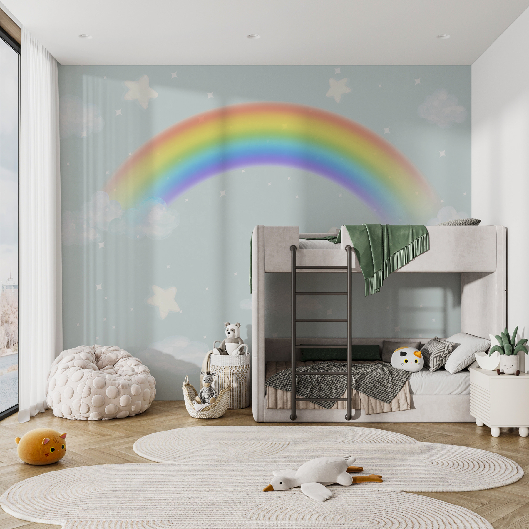 Tato nástěnná malba nejen dobře vypadá – působí kouzelně. Představte si, jak odpočíváte za deštivého dne s horkou čokoládou v ruce, zatímco tato nástěnná malba přináší závan čerstvého vzduchu a střípek barev. Možná se přistihnete, že se ztrácíte v klidném modrém pozadí nebo si s dětmi vymýšlíte příběhy o hvězdách a mracích. Je přátelská, přívětivá a okamžitě zvětší a rozjasní místnost.