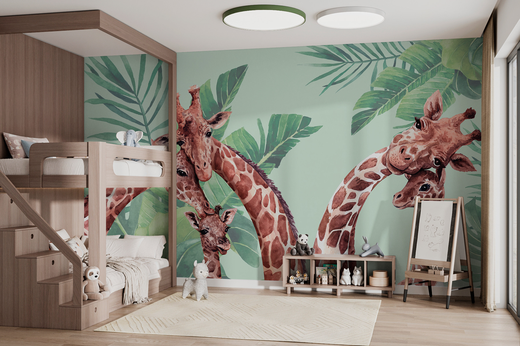 Představte si, že vejdete do místnosti a přivítá vás veselá parta žiraf na bujném zeleném pozadí. Tato nástěnná malba jako by přinesla veselý kousek safari přímo k vám domů. Skvěle se hodí do dětských pokojů, dětských pokojů nebo prostě do jakéhokoli prostoru, který potřebuje zábavný nádech inspirovaný přírodou. Každá žirafa svým rozkošným, něžným výrazem jako by říkala: “Ahoj, kamaráde!”. Skoro jako by tito vytáhlí chlapíci vykukovali z džungle a dodávali jí smysl pro dobrodružství a rozmar. Pokud znáte někoho, kdo miluje zvířata nebo chce do svého interiéru vnést trochu divočiny, je tato nástěnná malba fantastickou volbou. Navíc, kdo by se neusmál pokaždé, když uvidí tyto něžné obry? Ať už si děti představují, jak si hrají pod stromy, nebo uklidňující zelené odstíny, které jim uleví po dlouhém dni, tato nástěnná malba je víc než jen tapeta – je to atmosféra.