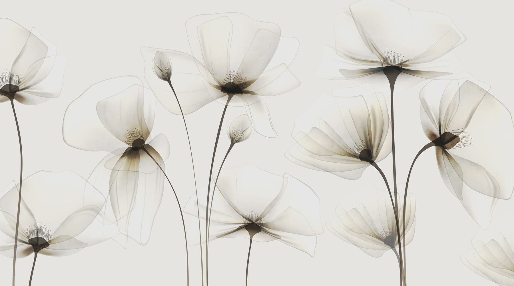 Máte pocit, že by vaše stěny potřebovaly trochu magie? Podívejte se na tuto nástěnnou malbu s tak jemnými květinami, které se téměř vznášejí ve vzduchu. Měkké, průhledné okvětní lístky na čistě bílém pozadí působí tak klidně a uklidňujícím dojmem. Představte si, že se každý den probouzíte s touto krásou – jako byste měli vlastní klidnou zahradu bez nutnosti zalévání.