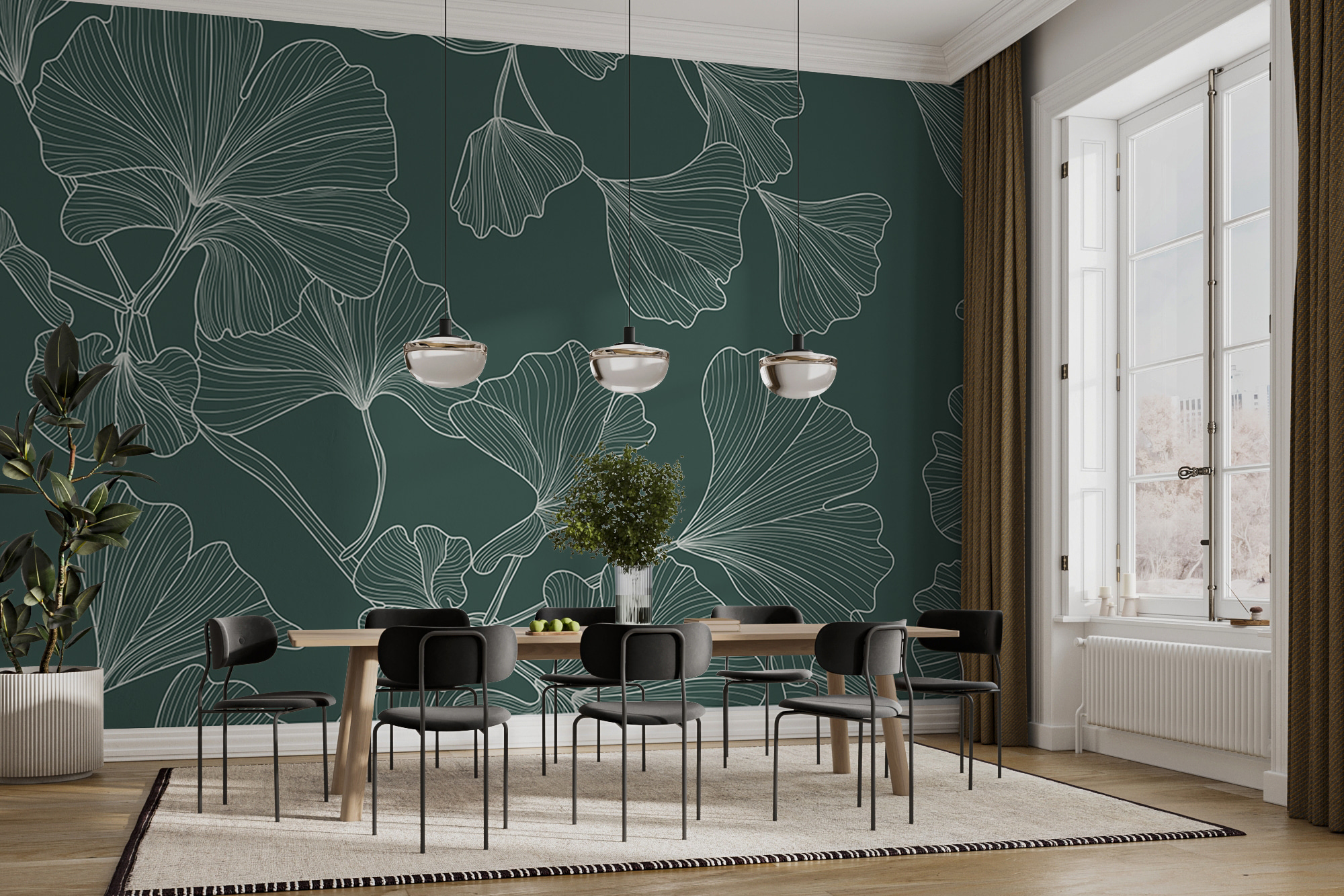 Proměňte svůj prostor pomocí nástěnné malby Elegantní listí jinanu dvoulaločného. Tento krásný kus fototapety v sobě spojuje eleganci přírody s nádechem abstraktního umění. Představte si, že vejdete do místnosti, kterou zdobí jeho jemné listy ginkga, které jí dodávají šepot sofistikovanosti a nádech zenu, stejně jako klidná venkovní zahrada přenesená do interiéru. Díky svým plynulým liniím a uklidňujícím barvám je dokonalou kulisou pro útulné chvíle nebo živé rozhovory. Představte si ho ve svém obývacím pokoji, kde tiše sklízí komplimenty a působí jako jemná listová náruč.