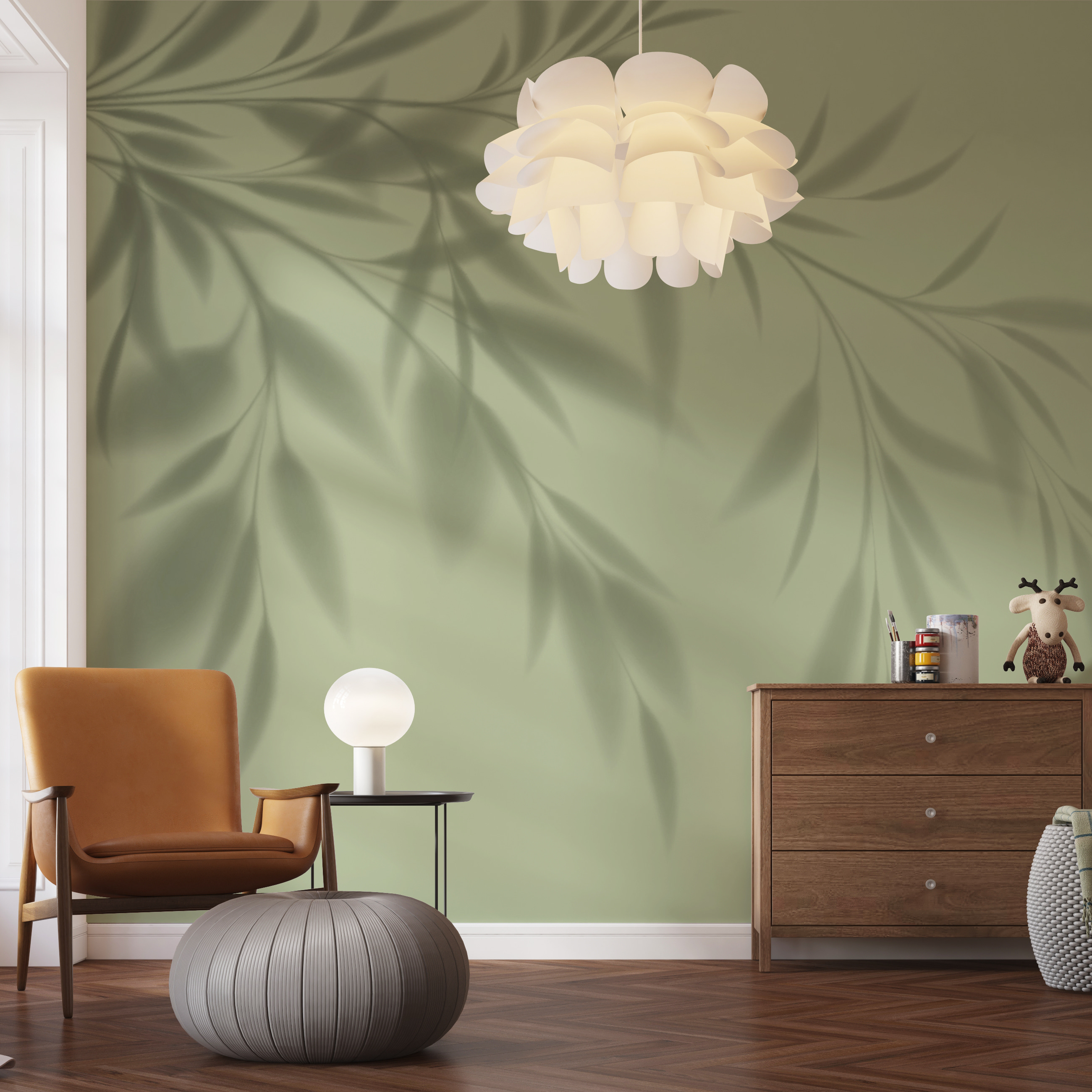 Podívejte se na tuto úžasnou nástěnnou malbu – “Stín rostliny na zdi”. Představte si jemné pohupování listů, které vrhá stíny na vaše zdi – super uklidňující, že? Je ideální pro vnesení nádechu klidu přírody do interiéru, není třeba zalévat! Tento kousek se hodí do mnoha stylů, od tropických vibrací až po minimalistickou eleganci. Představte si ho v útulném čtenářském koutku; budete se cítit, jako byste se uvelebili v listnatém útočišti. Jemné stíny dodávají 3D efekt, který je jako malý přírodní kouzelnický trik. Ať už se nachází v obývacím pokoji, ložnici, nebo dokonce v kuchyni, tato nástěnná malba vdechne každému prostoru svěží, zelený život. Navíc je téměř nemožné ji zabít – a to je pro milovníky rostlin velká výhra! 🌿