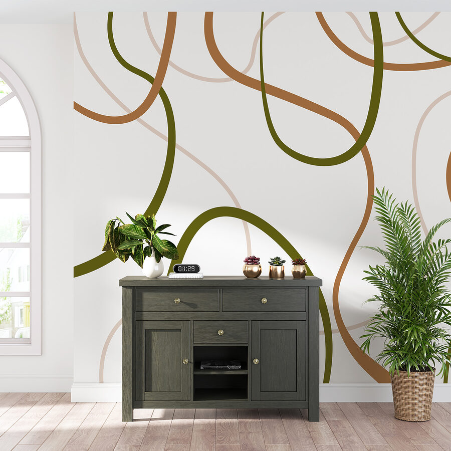 Proměňte svůj prostor pomocí této podmanivé nástěnné malby s hravým tancem hnědých a zelených čar. Je jako útulná náruč pro váš pokoj, která vyzařuje teplé, zemité vibrace. Představte si, že před ní popíjíte ranní kávu a cítíte se trochu inspirováni přírodou, aniž byste opustili svůj dům. Jemné víry dodávají stěnám stylový nádech a dělají z nich nejen stěny, ale i součást příběhu vašeho bydlení. Skvěle se hodí do kreativního zákoutí nebo živého obývacího pokoje a tak trochu našeptává: “Pojďme se bavit.” Vždyť je to taková malá, živá a příjemná dekorace. Ozdobte se vkusem a nechte barvy, aby do vašeho prostoru pozvaly ke konverzaci a pohodě.