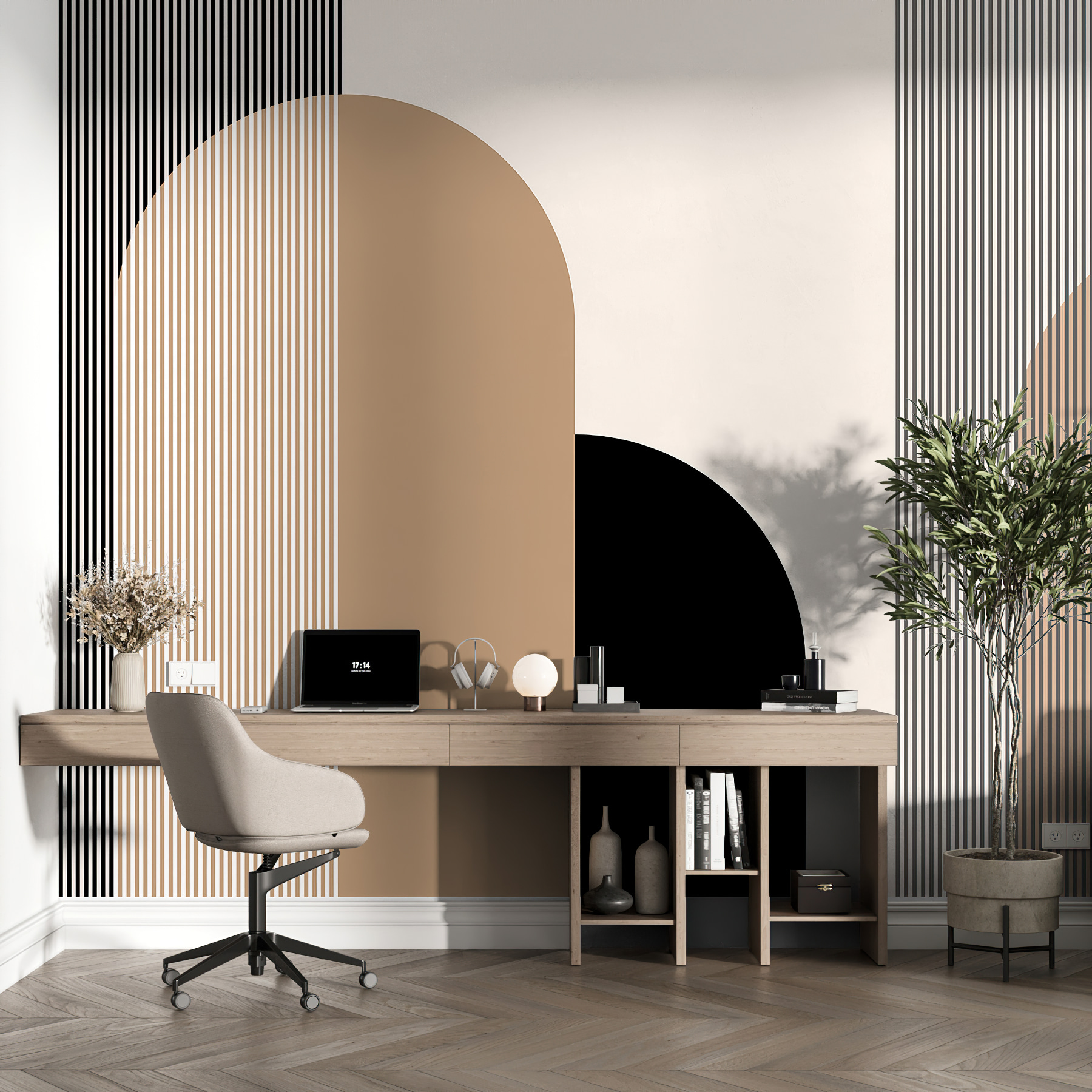 Černé, béžové a krémové tóny jsou jako vizuální objetí, uklidňující a přitom nepopiratelně stylové. Na těch geometrických tvarech je něco nekonečně fascinujícího – téměř se zdá, že se pohybují, když kolem nich procházíte, a vytvářejí dynamickou atmosféru přímo u vás doma. Je to jako mít kus moderního umění bez odrazující cenovky.