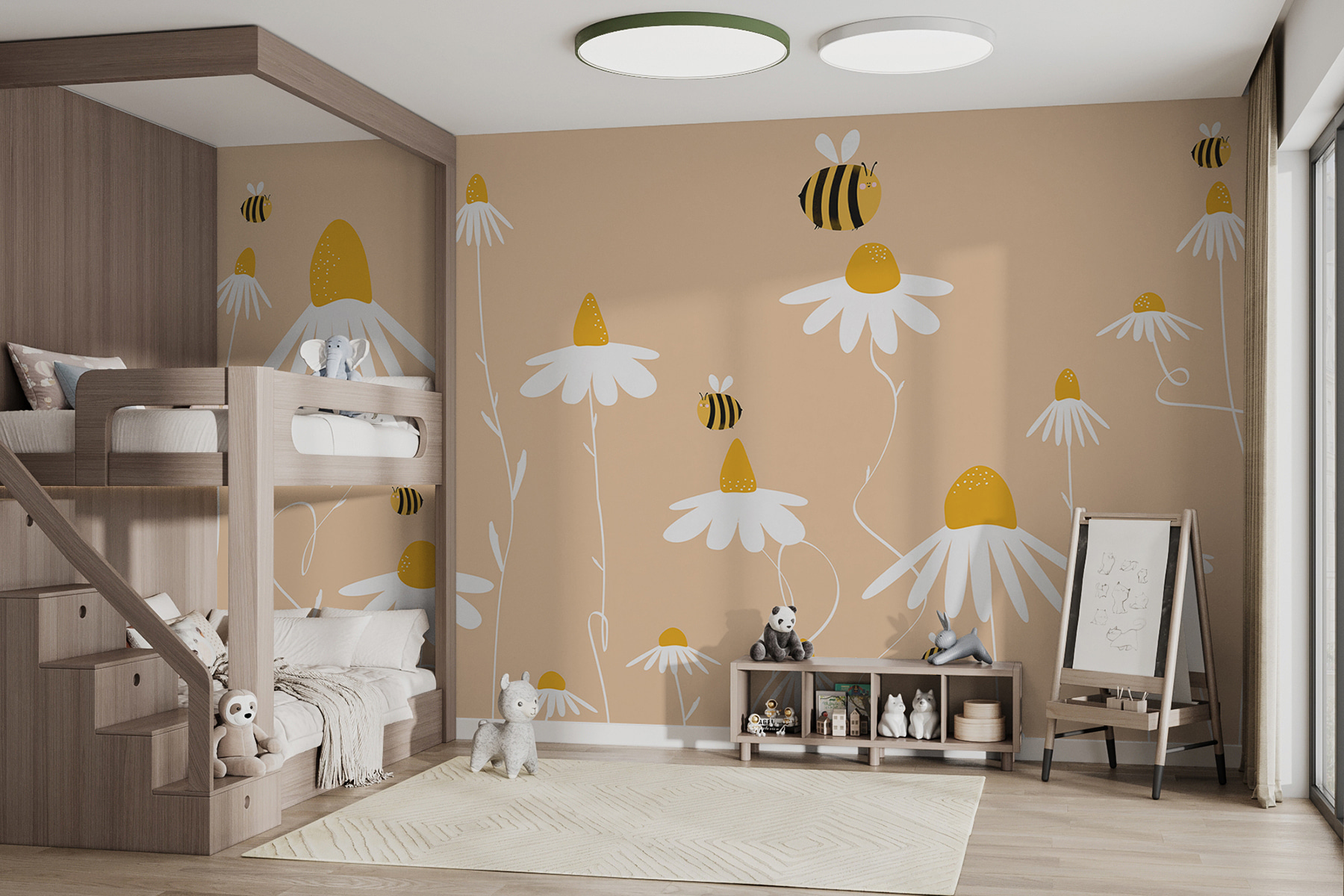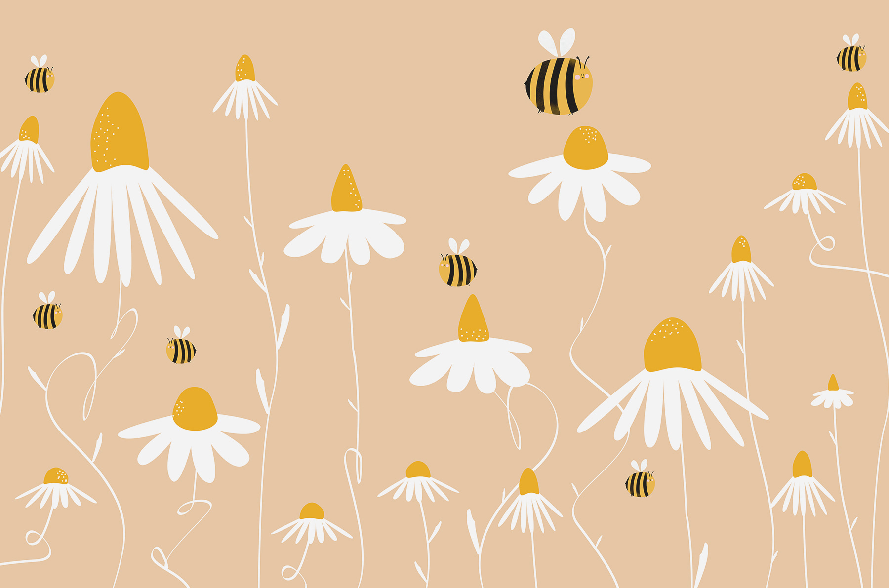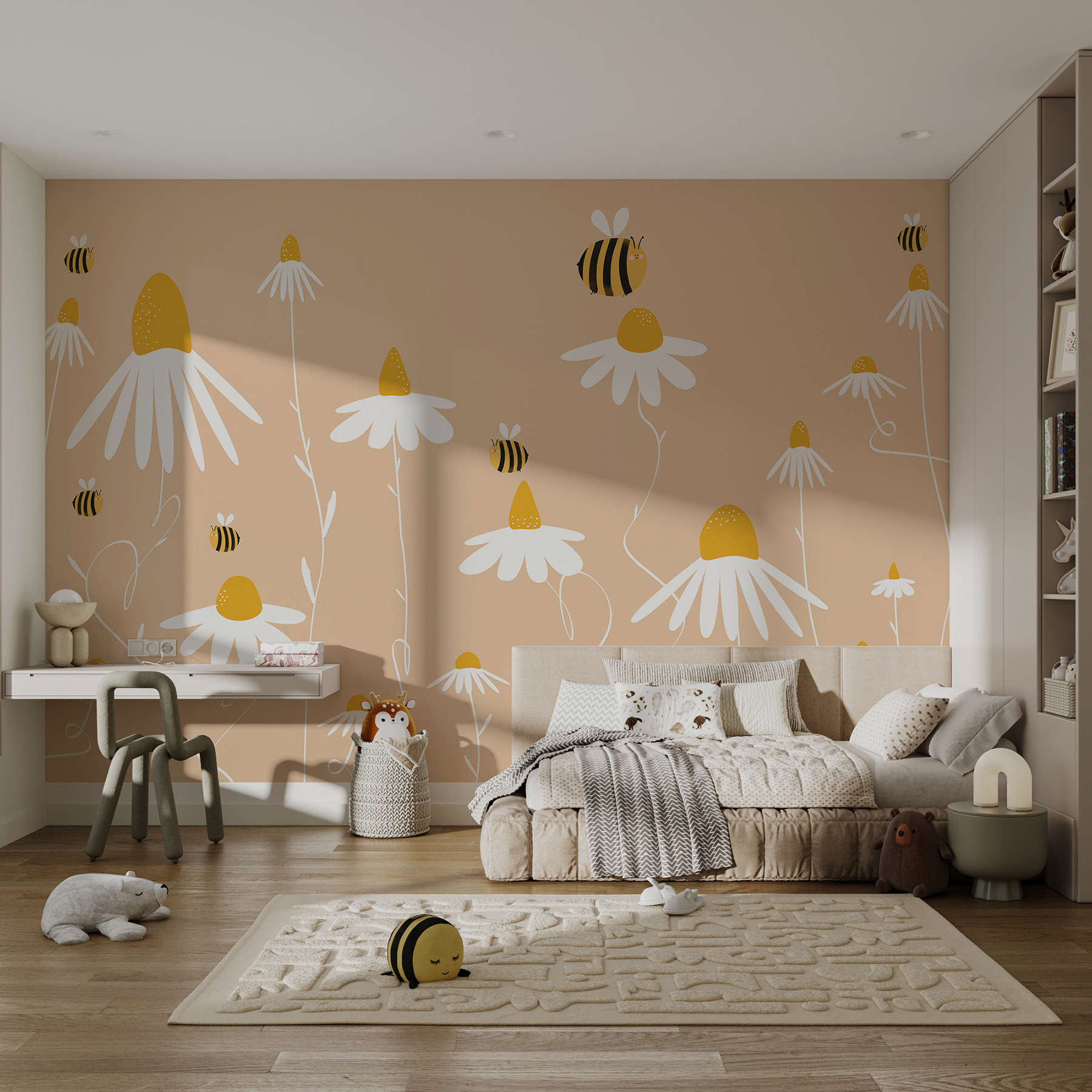 A ty přátelské malé včelky, které bzučí kolem – příliš roztomilé, že? Přidávají krásný nádech, který působí živě a bzučí energií. Ať už jste mladí, nebo jen mladí srdcem, tato nástěnná malba má to nepřehlédnutelné kouzlo, které promění každou místnost z “meh” na “marvelous”.