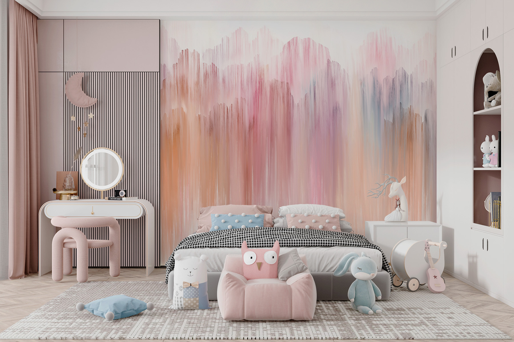 Hledáte něco speciálního, co by oživilo váš prostor? Podívejte se na tuto úžasnou nástěnnou malbu s názvem “Růžová a bílá hora”. Je v této chladné směsici kategorií, jako je abstraktní, současná a designová tapeta. Je to jako přenést klidnou a zasněnou krajinu přímo do vašeho obývacího pokoje. Měkká směs růžové a bílé má tento akvarelový pocit, takže váš prostor se cítí teplý a příjemný, ale s trochou uměleckého twistu. Představte si, že se zaboříte do svého oblíbeného křesla, v ruce držíte šálek čaje a necháváte oči bloudit po těch jemných vrcholcích a údolích – téměř jako váš osobní útěk do vzdálených, mlhavých hor. Každý pohled může vyvolat nové snění nebo chvíli klidu v hektickém dni. Ideální kamkoli, kde potřebujete trochu více klidu.