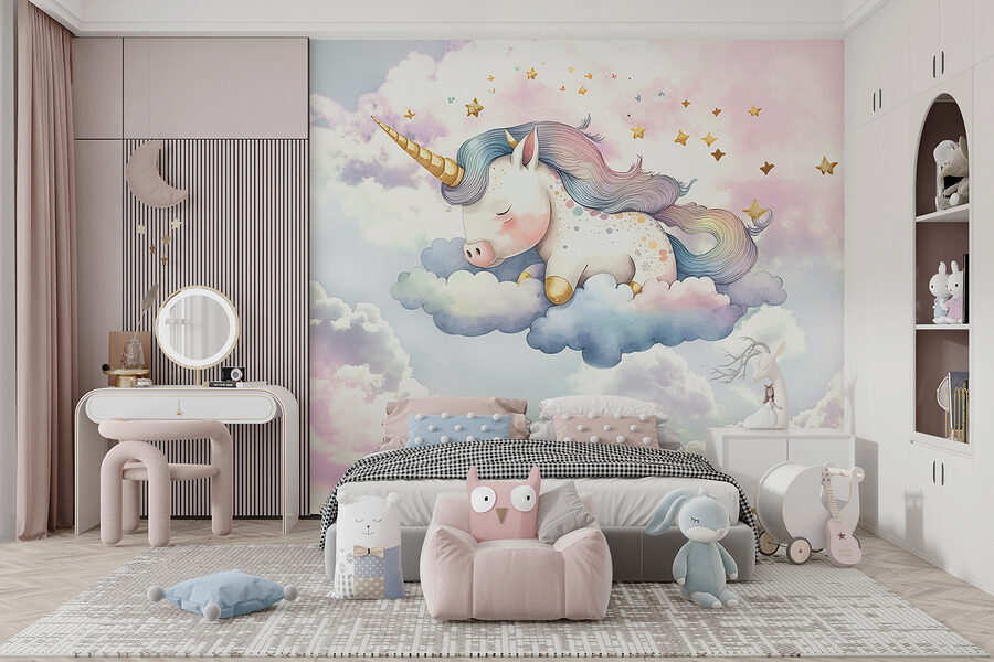 Podívejte se na tuto snovou nástěnnou malbu “Jednorožec spí na mracích”! Vážně, je to jako vstoupit do nadýchaného, kouzelného snění pokaždé, když vejdete do místnosti. Představte si, že na vašem oblíbeném útulném místě je nyní super roztomilý dřímající jednorožec, který se uvelebil na měkkých nadýchaných mracích – to je atmosféra, že? Ideální pro přidání kouzelného nádechu do dětského pokoje nebo dokonce do vašeho malého čtecího koutku.