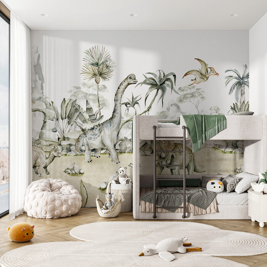 Napadlo vás někdy proměnit svůj pokoj v prehistorický ráj? “Nástěnné malby w00847” je přesně to, co potřebujete! Představte si, že se probudíte do světa, kde se dinosauři volně pohybují mezi bujnou tropickou zelení – vážně, je to jako vstoupit do krásně ilustrovaného dinosauřího snu. Díky jemnému akvarelovému designu máte pocit, jako by tito přátelští obři mohli vejít přímo do vašeho pokoje a pozdravit vás. Ideální pro děti, které milují dinosaury, i pro dospělé, kteří si chtějí svůj prostor obohatit o hravý a nápaditý prvek. Není to jen nástěnná malba, je to vstupenka do stroje času, který přistane uprostřed klidné prehistorické džungle. Takže jste připraveni přidat na své stěny trochu dino-kouzla? Tahle má vaše jméno napsané na každém kroku!