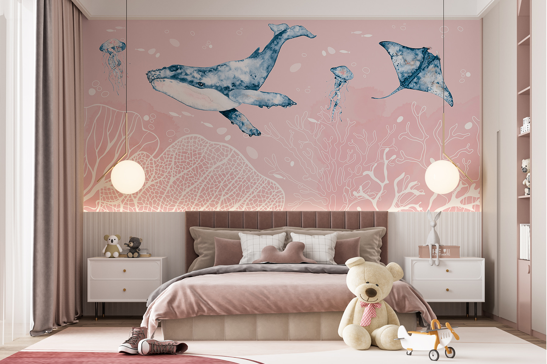 Ideální do dětského pokoje, na tvůrčí pracoviště nebo kamkoli, kde potřebujete dotek klidu. Sledujte, jak se vašim hostům rozzáří oči směsicí úžasu a zvědavosti, jako by objevili tajnou podmořskou zahradu. Není to jen nástěnná malba – je to zážitek, podnět ke konverzaci, uklidňující kulisa pro váš každodenní život. Ponořte se a nechte se unášet vlnami kreativity a klidu. 🌊🐋
