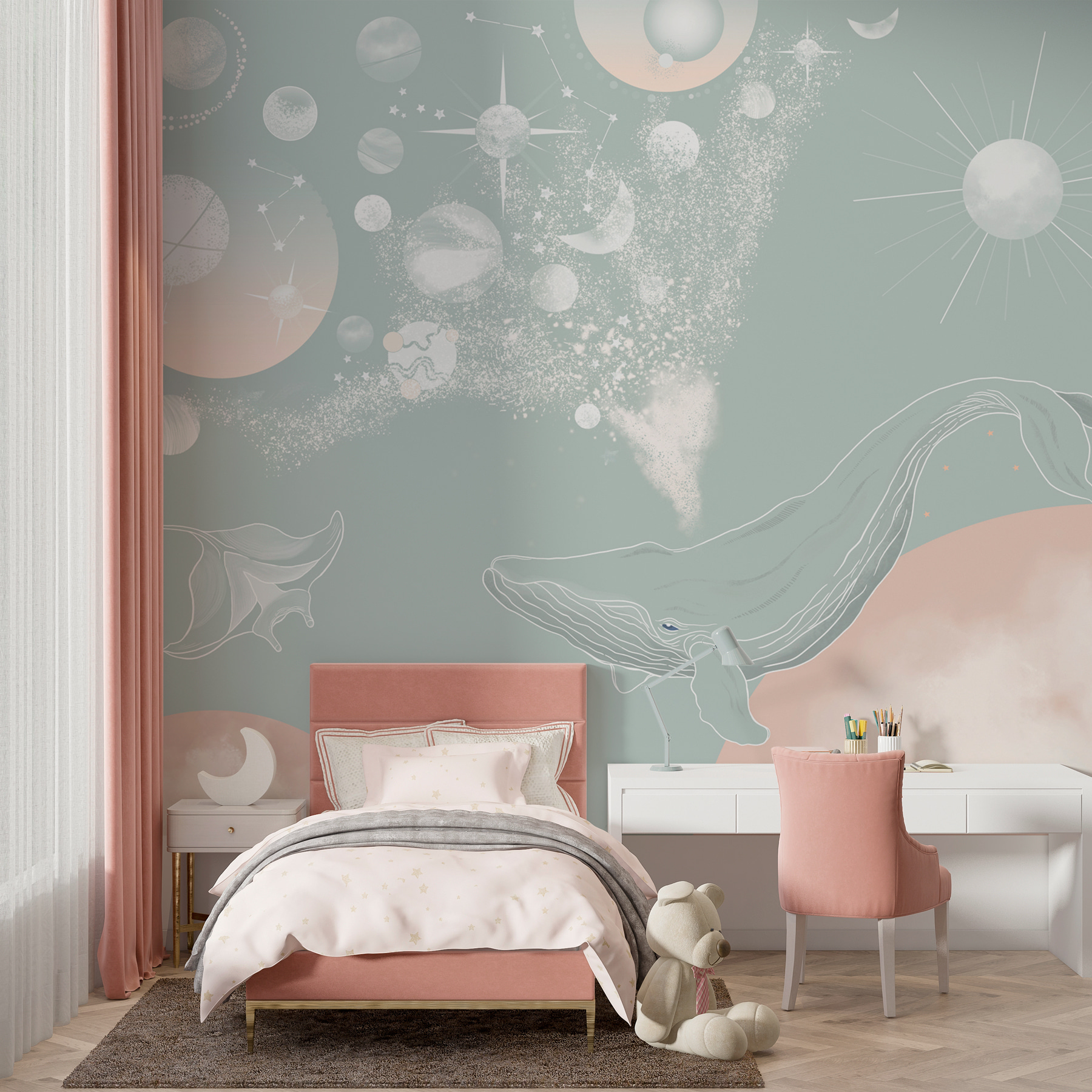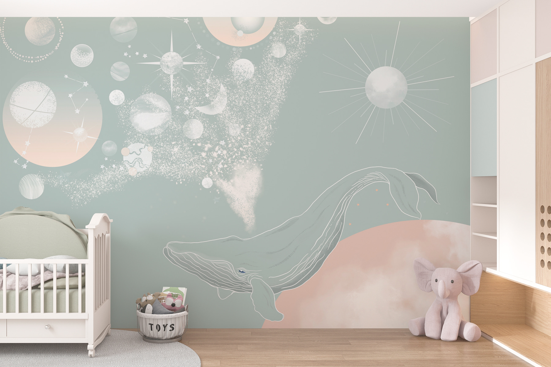 Představte si to: Nástěnná malba s názvem “Bílý kruh s černými skvrnami”, která je součástí kategorií jako Nástěnné malby zvířat a Dětské nástěnné malby. Představte si, že se dětský pokoj promění v okouzlující prostor s tímto hravým designem. Je to jako spojení dne na pláži s nocí pod hvězdami. S něžnými velrybami, které se vznášejí mezi snovými kruhy a planetami, vzbuzuje zvědavost a dodává kouzlo. Skvěle se hodí do dětských pokojů, dětských heren nebo třeba do zábavného koutku obývacího pokoje. Není to jen dekorace, je to zážitek, který nabízí klidnou a zároveň živou atmosféru. Ideální pro snílky a malé objevitele!