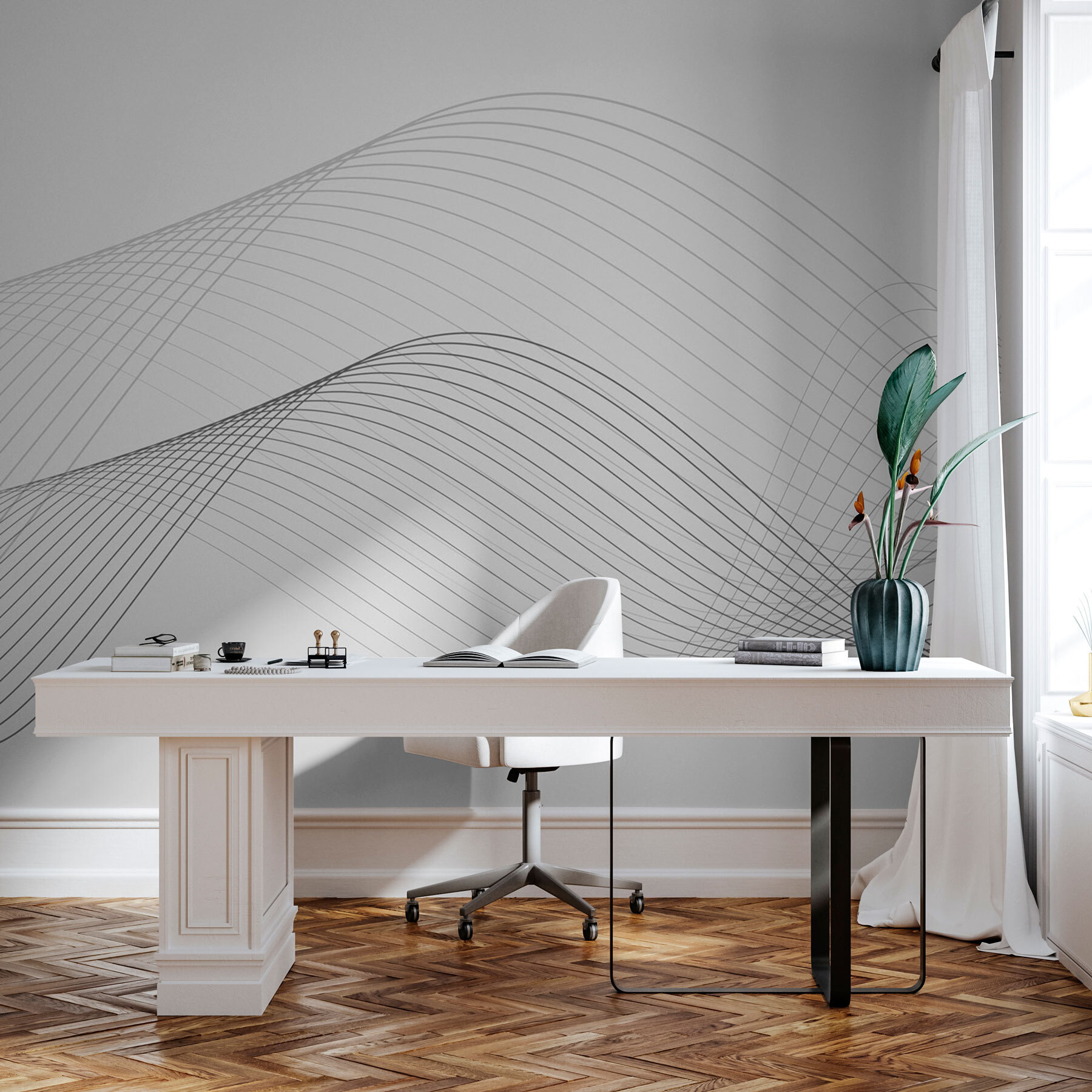 Představte si, že vám po stěně plyne klidná vlna černých a bílých čar. Tato fototapeta s minimalistickým designem dodá každé místnosti elegantní nádech. Je to jako jemný vánek na pláži, ale pro vaše zdi! Ať už máte rádi moderní dekorace, nebo jen chcete něčím zatřást, tato nástěnná malba se sem hodí. Je ideální pro chvíle, kdy si potřebujete jen vizuálně odpočinout. Je to jako moderní mistrovské dílo, které nekřičí – šeptá, a každý má rád dobrý šepot, že? Promění obyčejné stěny v umění. Stylové, jednoduché, ohromující.