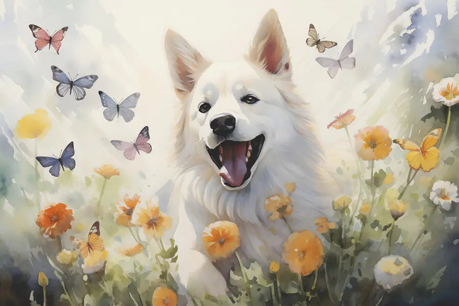 Proměňte jakýkoli prostor ve veselé útočiště s touto nádhernou fototapetou s hravým bílým psem skotačícím mezi živými květinami, obklopeným třepotajícími se motýly. Představte si radost, kterou tento výjev přináší, téměř jako hřejivé objetí za slunečného dne. Hravý duch psa vyzařuje štěstí a vyzývá každého, kdo projde kolem, aby se zastavil a usmál. Tato nástěnná malba, která se skvěle hodí do útulného čtecího koutku nebo do živé herny, dodá šmrnc přírodě bez alergií. Kdo by navíc nechtěl, aby mu stěny rozjasňovalo veselé štěně? Je to malý kousek radosti, díky kterému se každý den bude cítit jako výjimečná událost.