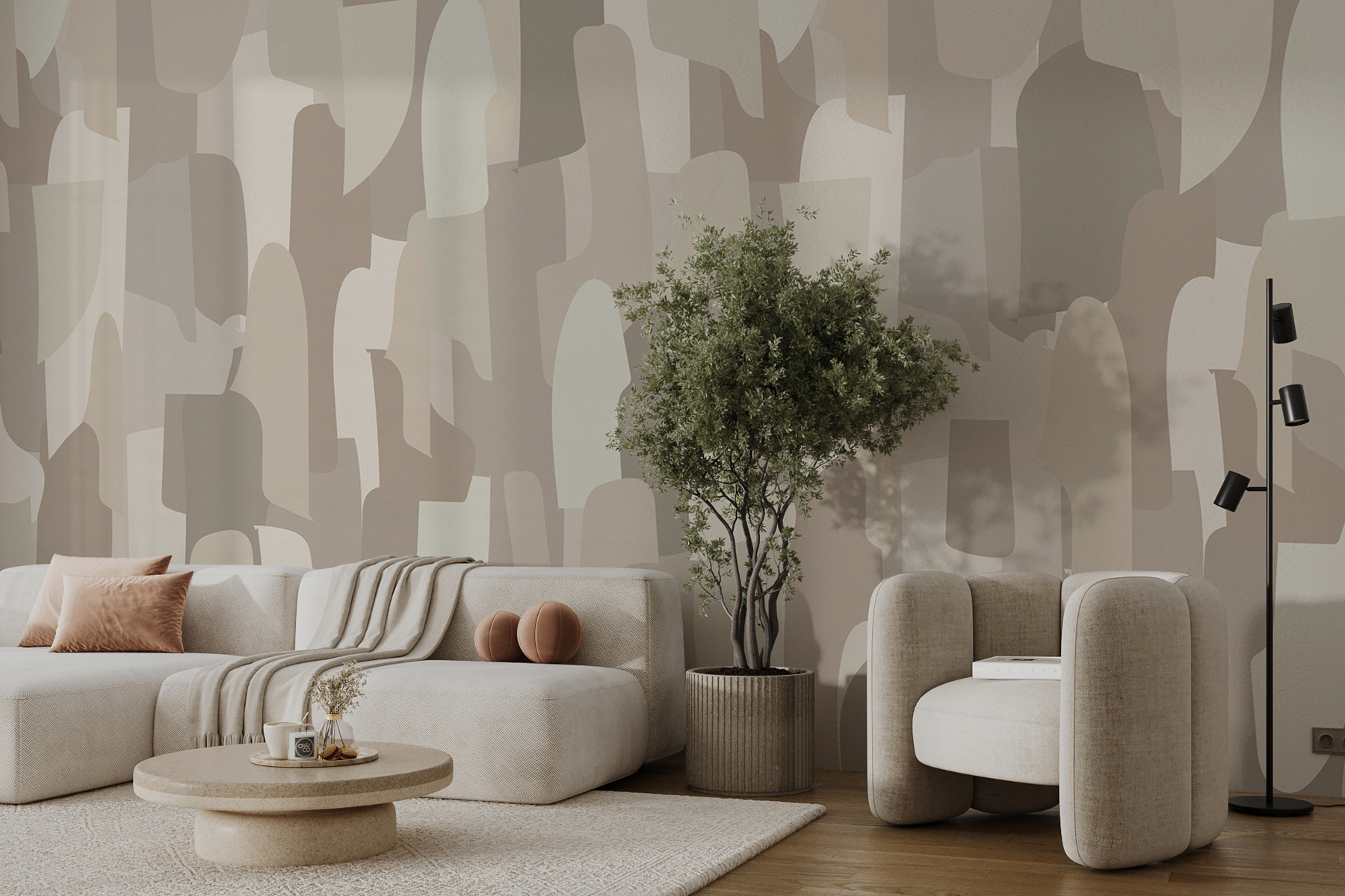 Fototapeta Abstraktní béžové tvary se prolínají. (SKU: w00987)