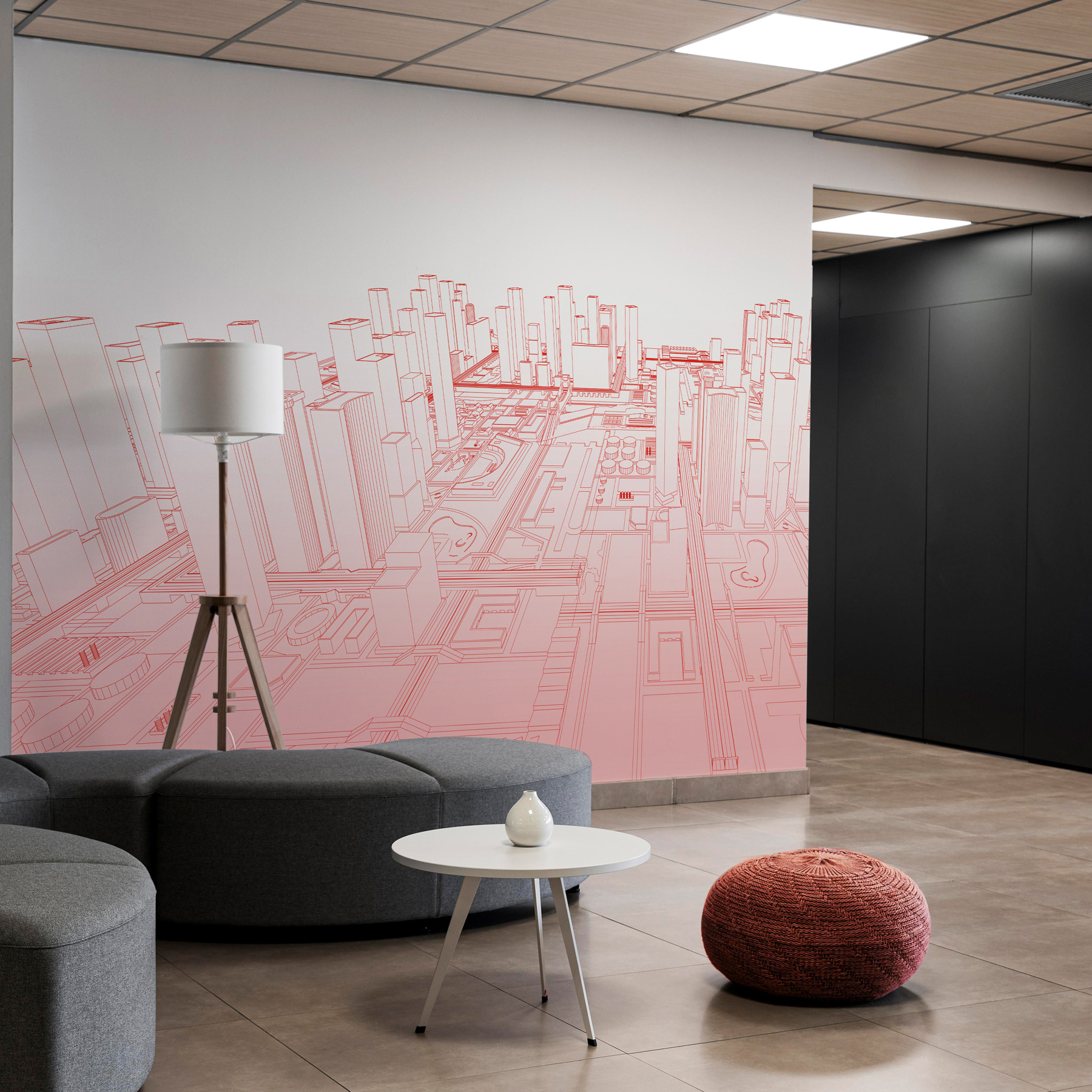 Proměňte jakýkoli prostor pomocí této poutavé nástěnné malby s výraznou červenou kresbou rušného města. Představte si, že každý den vstupujete do moderní městské krajiny, kde chladný minimalismus designu podněcuje kreativitu. Tato nástěnná malba vaši stěnu nejen zakryje, ale také vypráví příběh. Představte si líná nedělní odpoledne s přáteli, kteří obdivují složité detaily, nebo pořádání elegantních večeří, které se na tomto podmanivém pozadí stanou ještě výjimečnějšími. Je to vše o vyvolání konverzace a zároveň pozvednutí atmosféry v každé místnosti. Ideální pro každého, kdo má rád ve svém domově nádech moderního stylu. Nechte toto úžasné umělecké dílo vdechnout nový život vašemu interiéru!