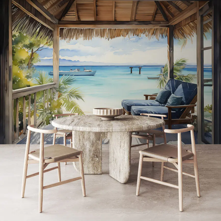 Představte si, že se necháte unést na vysněnou pláž, aniž byste museli opustit svůj obývací pokoj! Tato nástěnná malba promění jakýkoli prostor v klidný únik k moři – představte si den, kdy jedinou prací je zabořit se do těchto příjemných křesel. Ucítíte jemný vánek akvarelových vln, uslyšíte jemné šumění palem. Ideální pro duše milující přírodu nebo pro každého, kdo hledá klidnou atmosféru. Je to jako mít výhled na oceán, bez písku v botách. Ideální pro rozproudění snění nebo inspiraci ke spontánní tropické párty!