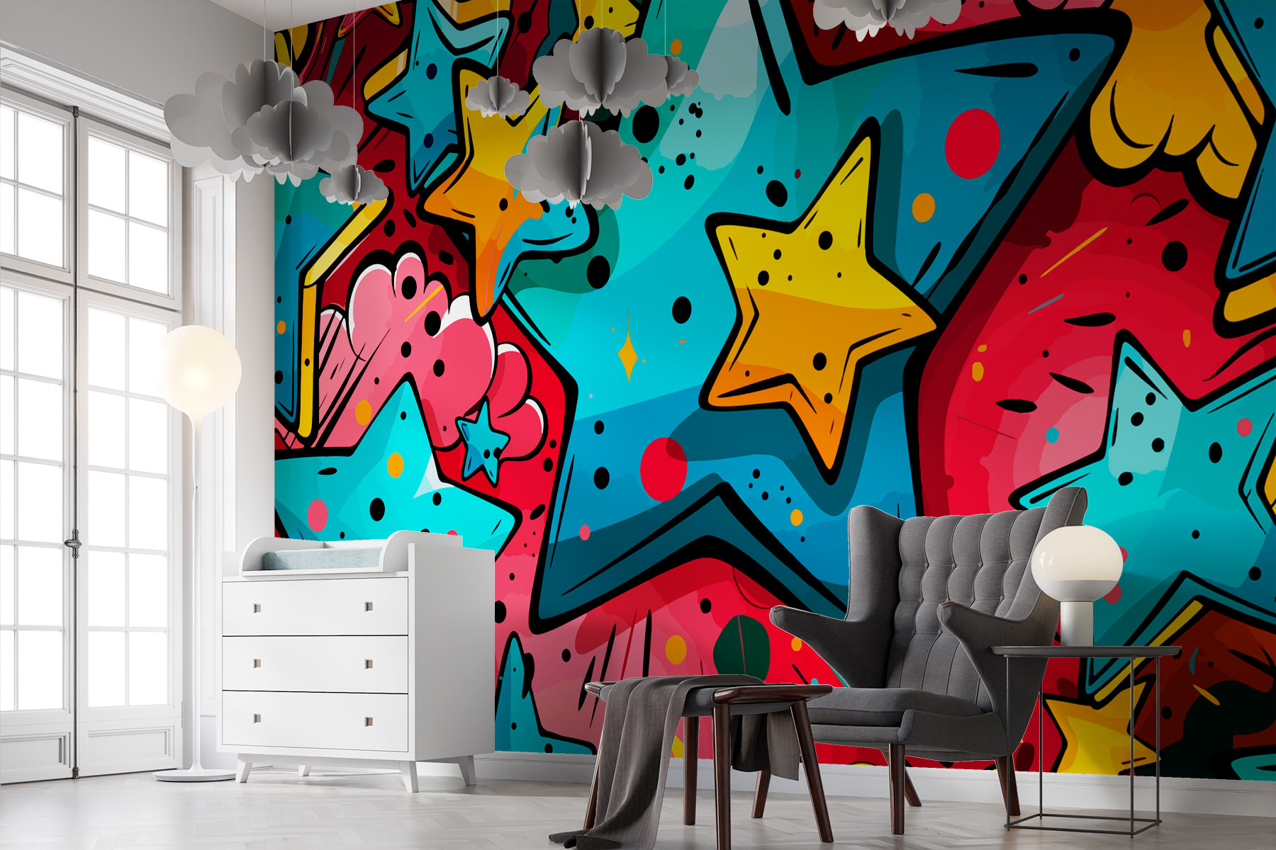 Představte si, že vstoupíte do místnosti a okamžitě se přenesete do galaxie plné rozmarů a zázraků. Přesně to dokáže nástěnná fototapeta “Barevný hvězdný vzor”. Je to jako večírek na vaší zdi, který nikdy nekončí! Je plná zářivých hvězd a hravých barev a je ideální pro každého, kdo chce ve svém prostoru zažít pořádnou dávku zábavy. Představte si dítě, které vejde dovnitř a zalapá po dechu nadšením, nebo dospělého, který je najednou zase snílek. Je to umění, které lidi přiměje mluvit a snít – každý se na tu oslnivou stěnu určitě zeptá!