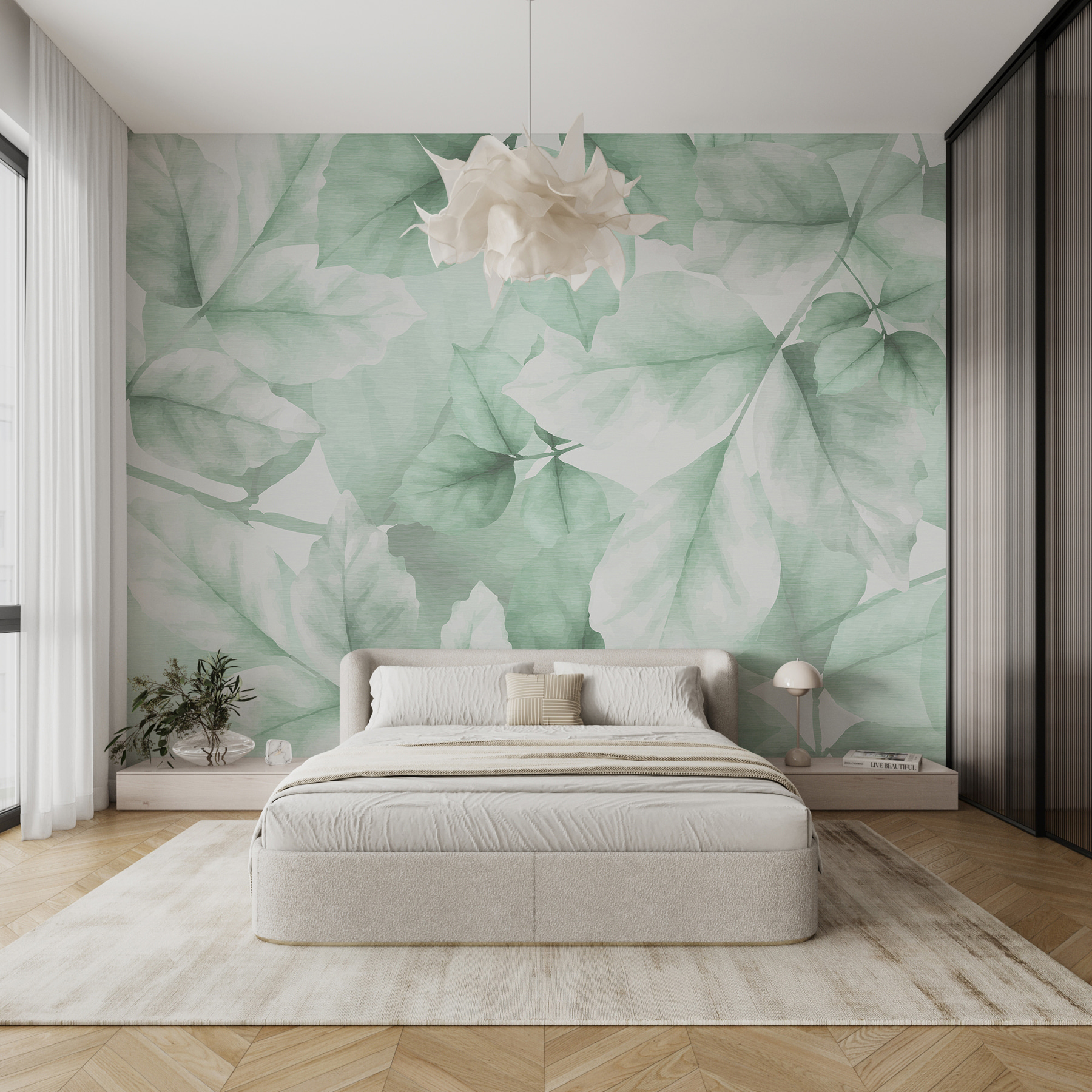 Proměňte nudnou stěnu ve snovou oázu s nástěnnou malbou Éterické zelené listy. Představte si to: svěží akvarelové listy tančící po vašem prostoru a vytvářející klidnou atmosféru, která je ideální pro odpočinek po dlouhém dni. Je to jako přenést přírodu do interiéru bez špíny! Tato nástěnná malba působí osvěžujícím dojmem, téměř jako byste vstoupili do prosluněného lesa. Přátelé se projdou dovnitř, zhluboka se nadechnou a najednou je to mini útočiště přímo u vás doma. Ideální pro útulný koutek nebo tu stěnu, která prostě potřebuje trochu lásky. Kdo by řekl, že se v zeleni můžete cítit tak dobře?