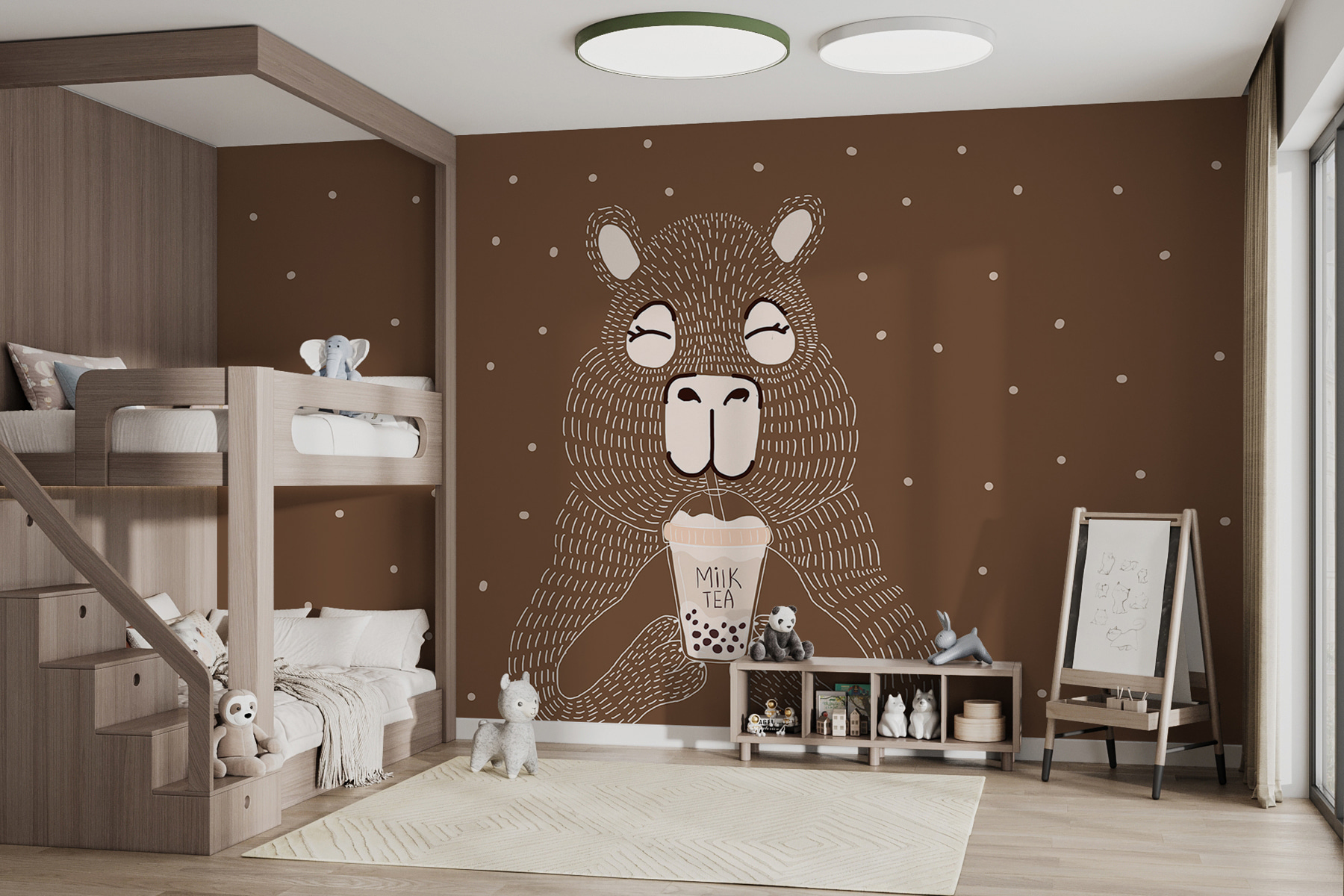 Přemýšleli jste někdy o tom, jak může nádech rozmarnosti rozzářit místnost? Vstupte do nástěnné malby “Kreslené zvíře držící šálek mléčného čaje”. Představte si to: půvabné stvoření s růžovými tvářičkami, které blaženě popíjí mléčný čaj. Je to jako hřejivé objetí pro vaše stěny! Ideální pro oživení dětského pokoje nebo třeba svérázného kuchyňského koutu. Představte si, jak se hosté smějí jeho hravosti – najednou bude váš domov působit ještě útulněji. Není to jen dekorace; je to každodenní malá připomínka, že si máme užívat jednoduchých radostí života, jeden doušek za druhým.