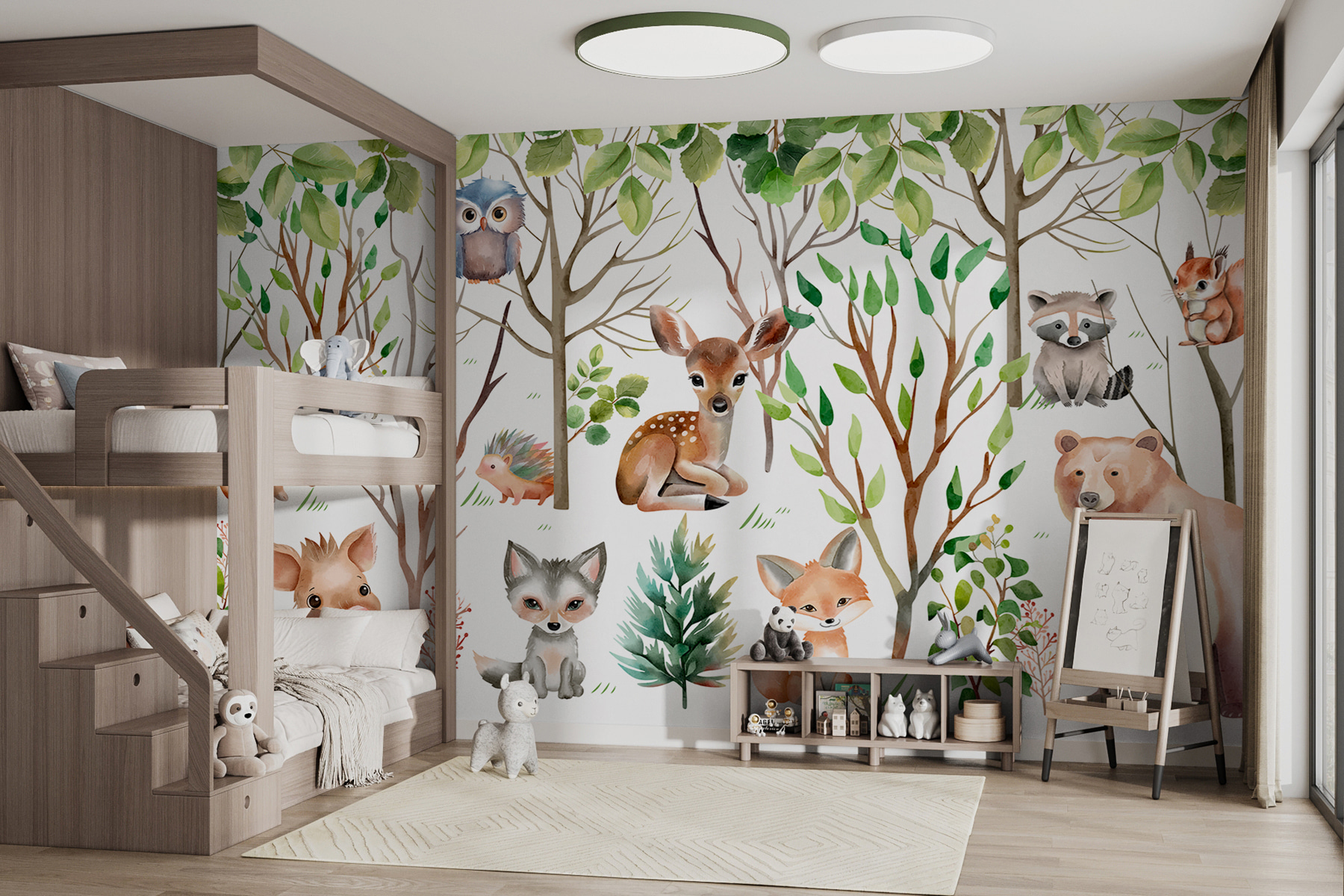 Ach, to kouzlo divočiny! Představte si, že se probudíte a ocitnete se uprostřed pohádkového lesa. Přesně to do vašeho prostoru vnese tato nástěnná malba “Skupina zvířat v lese”. Roztomilá lesní zvířátka hravě vykukují – králíci, sovy a dokonce i zvědavý medvěd – a každé z nich dodává nádech rozmarnosti. Je to jako útulné útočiště na chatě, bez postřiku proti hmyzu! Ideální do dětských pokojů nebo obývacích pokojů, které chtějí zažít trochu tepla a zázraků. Přátelé se možná budou ptát, jestli jste někde neukryli tajný les. Kdo by řekl, že příroda může být tak přátelská?
