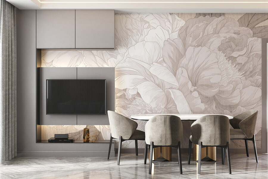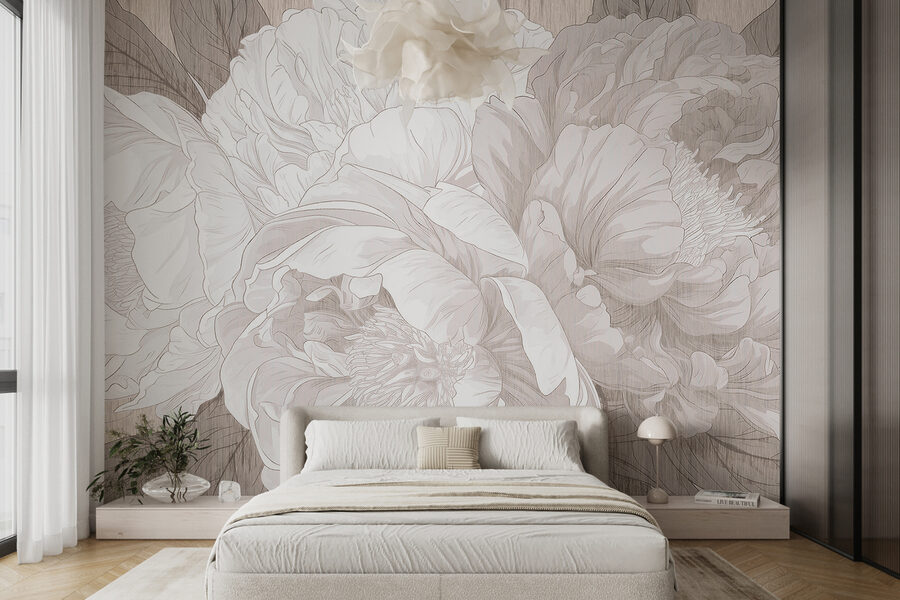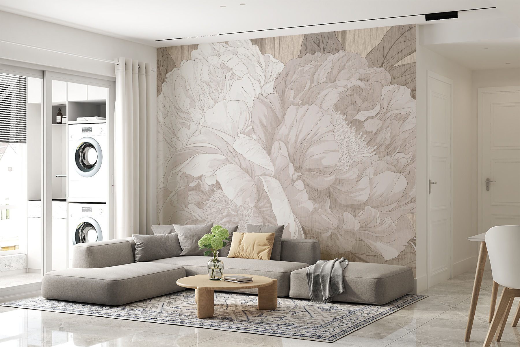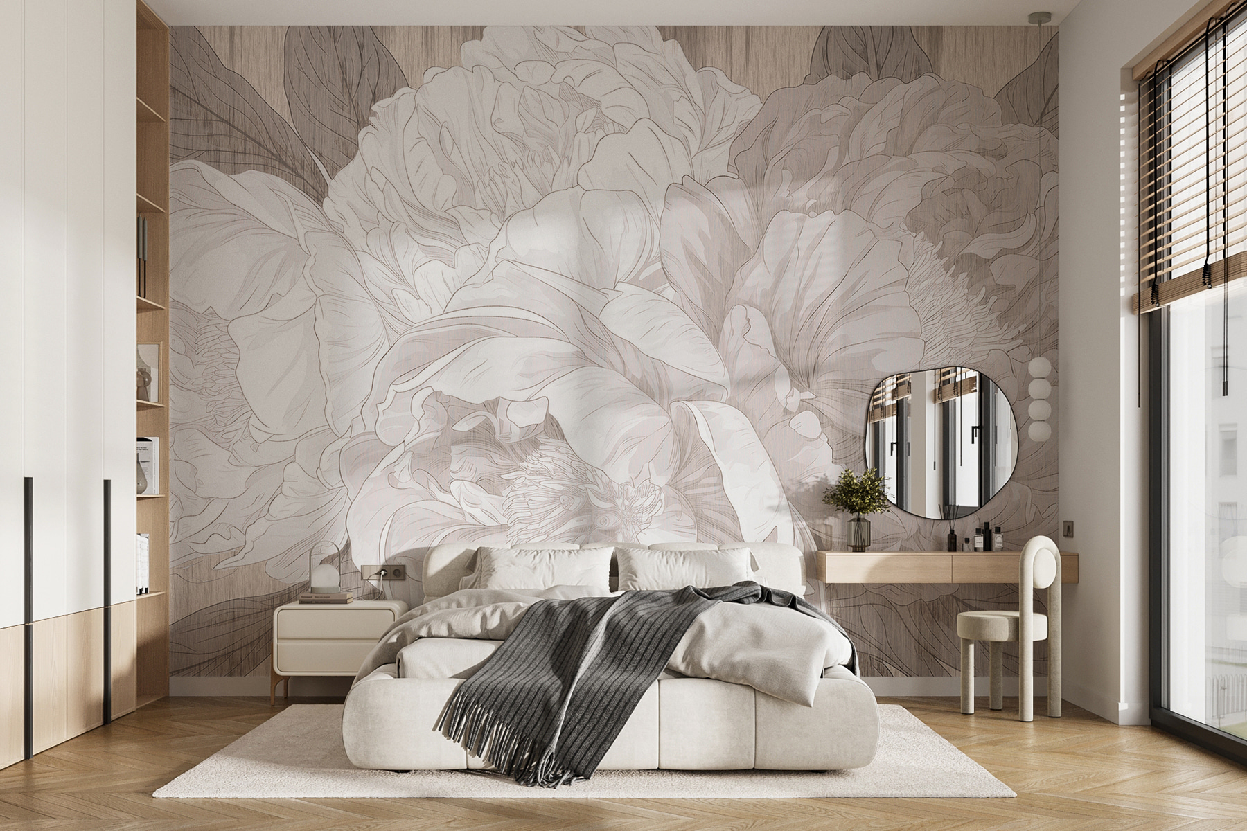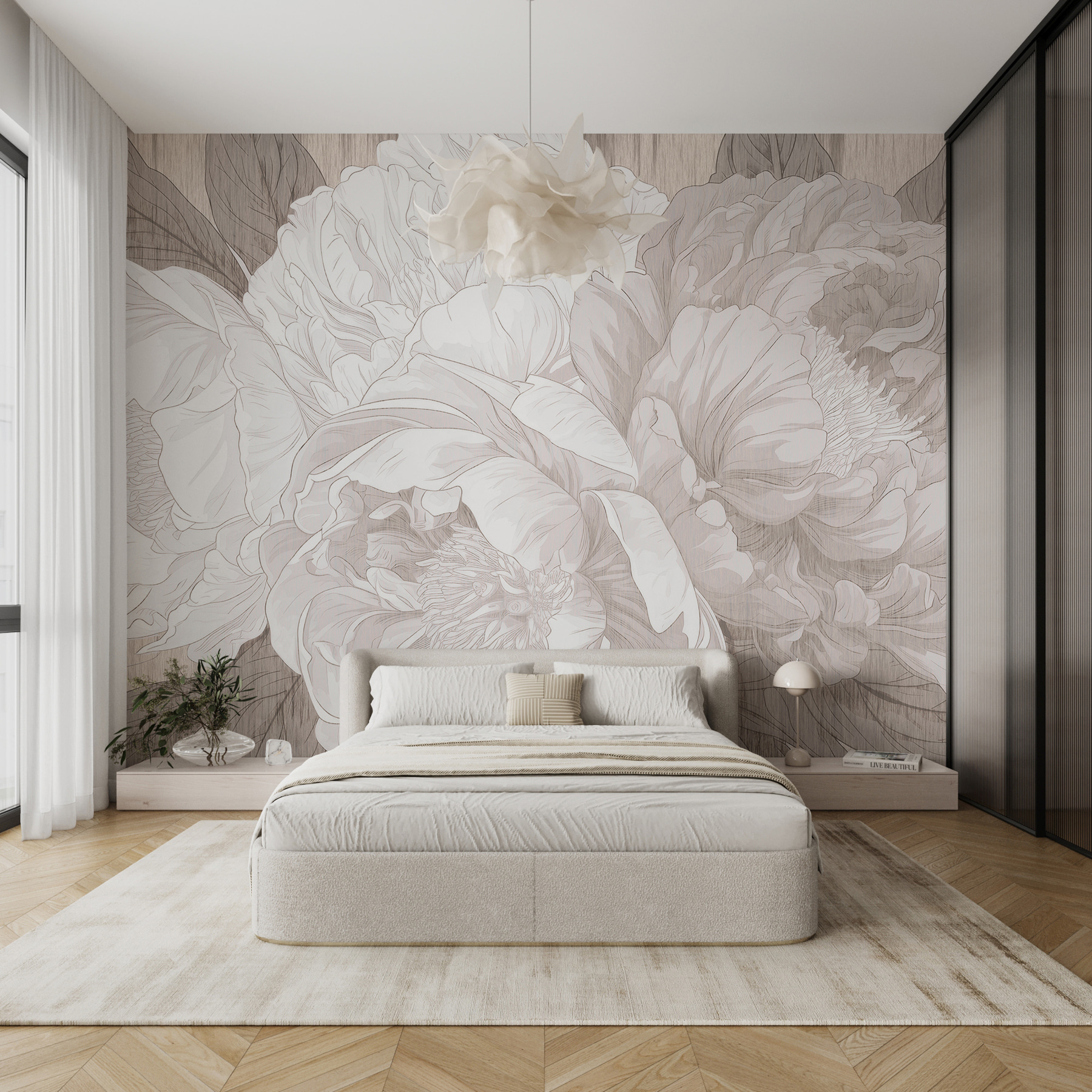 Představte si to – ležíte v obývacím pokoji, v ruce držíte šálek čaje a stěnu vám zdobí výrazná nástěnná malba pivoňky. Jako by do místnosti samy květiny našeptávaly eleganci. Monochromatická skica jí dodává sofistikovanou atmosféru, skoro jako byste se nacházeli v elegantní umělecké galerii nebo možná dokonce v bezstarostné, kouzelné zahradě. Ideální pro každého, kdo má rád náznak kouzla přírody, aniž by to křičel. Navíc přináší klidnou, mírumilovnou náladu – dodává trochu klidu do rušných dnů. Ideální, že?