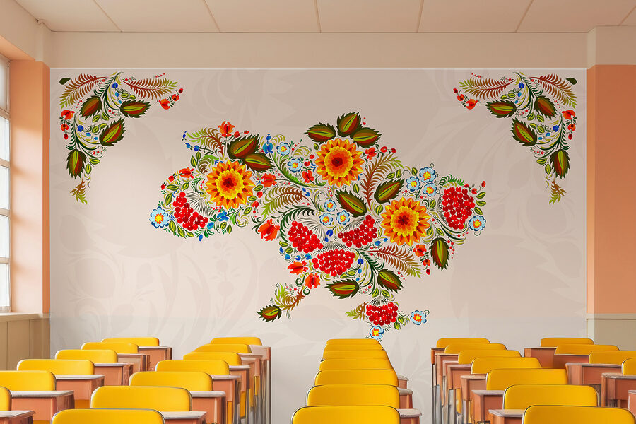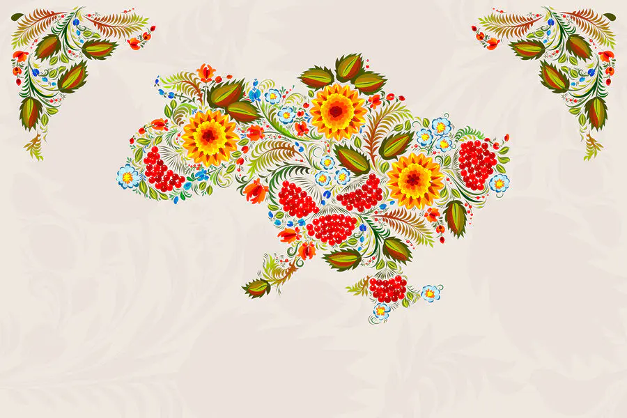 Fototapeta Mapa Ukrajiny s květinami Fototapeta Mapa Ukrajiny s květinami