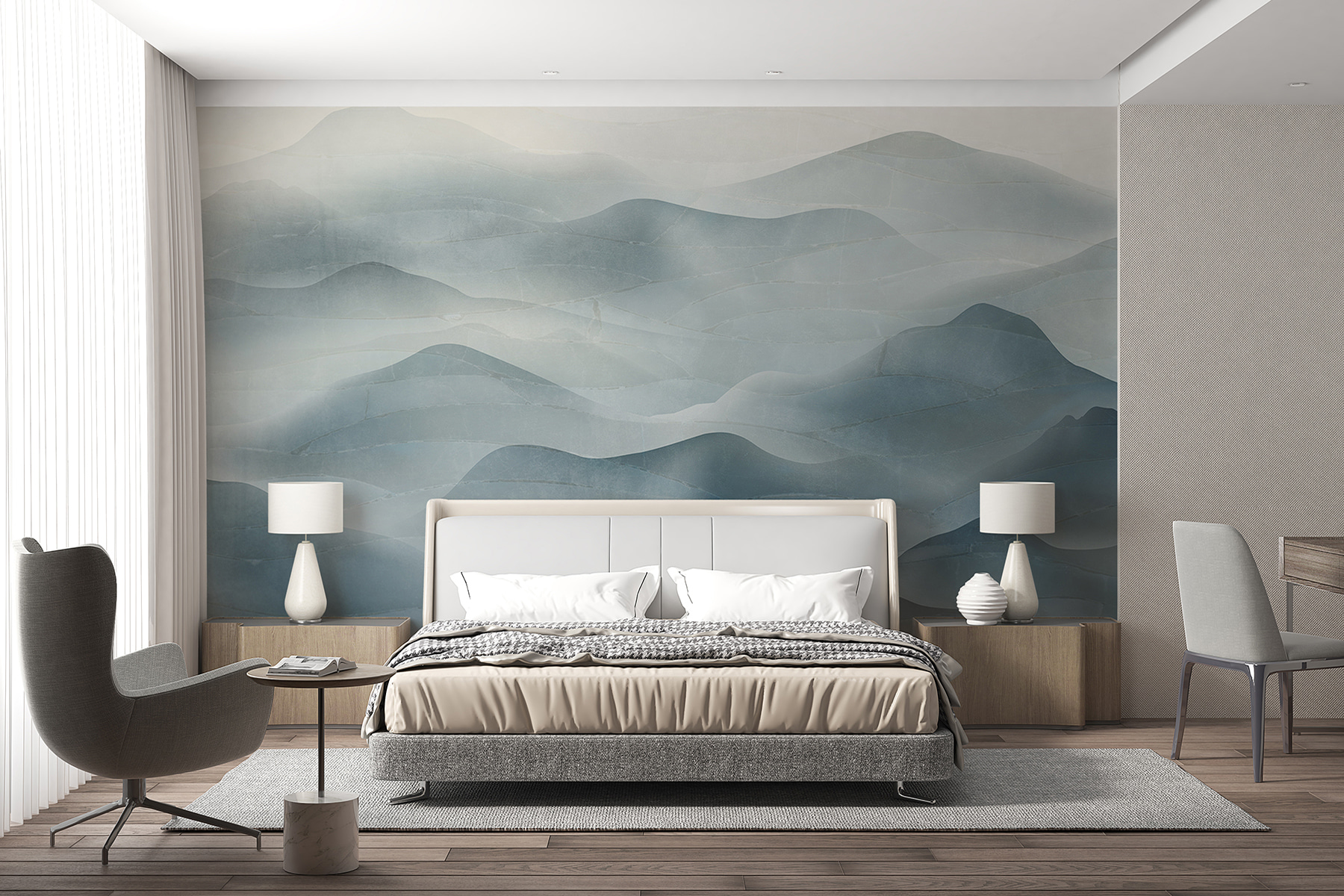 Fototapeta Klidné modré vlny se plynule prolínají Fototapeta Klidné modré vlny se plynule prolínají