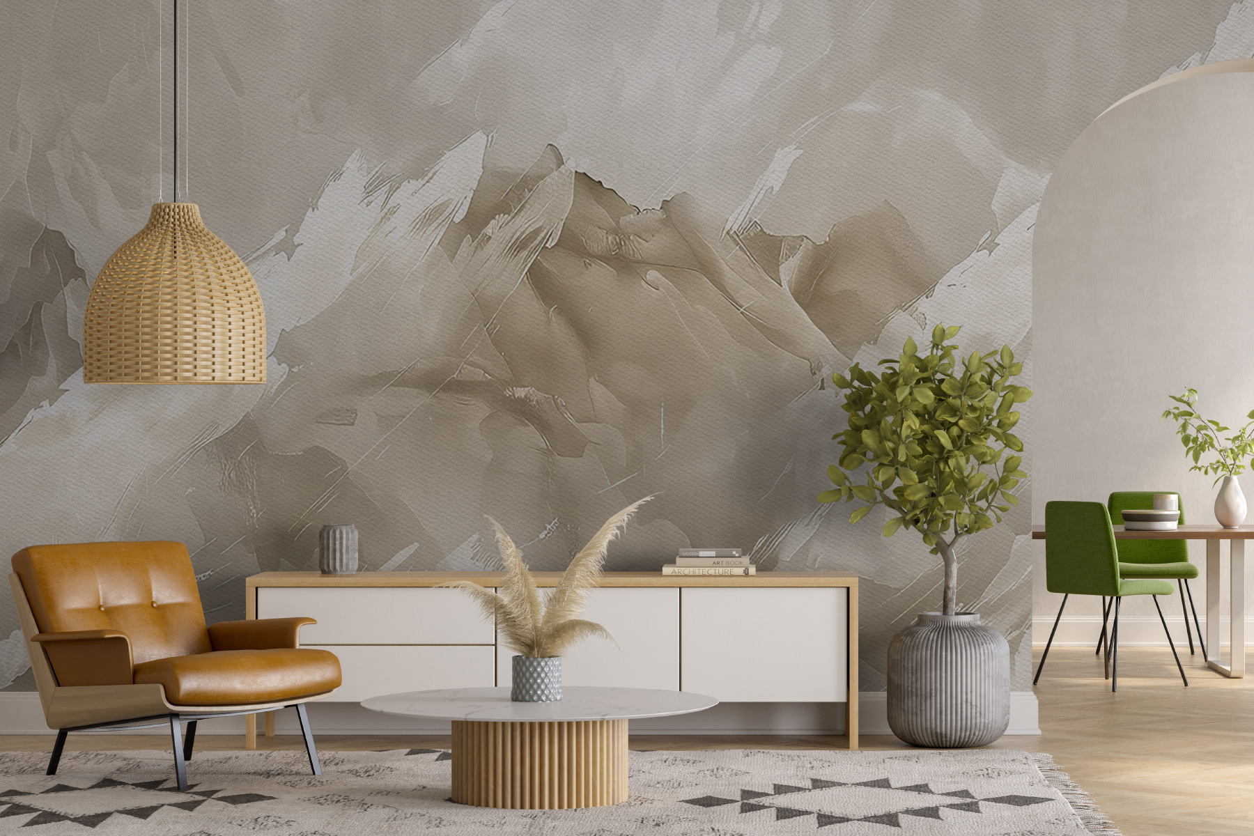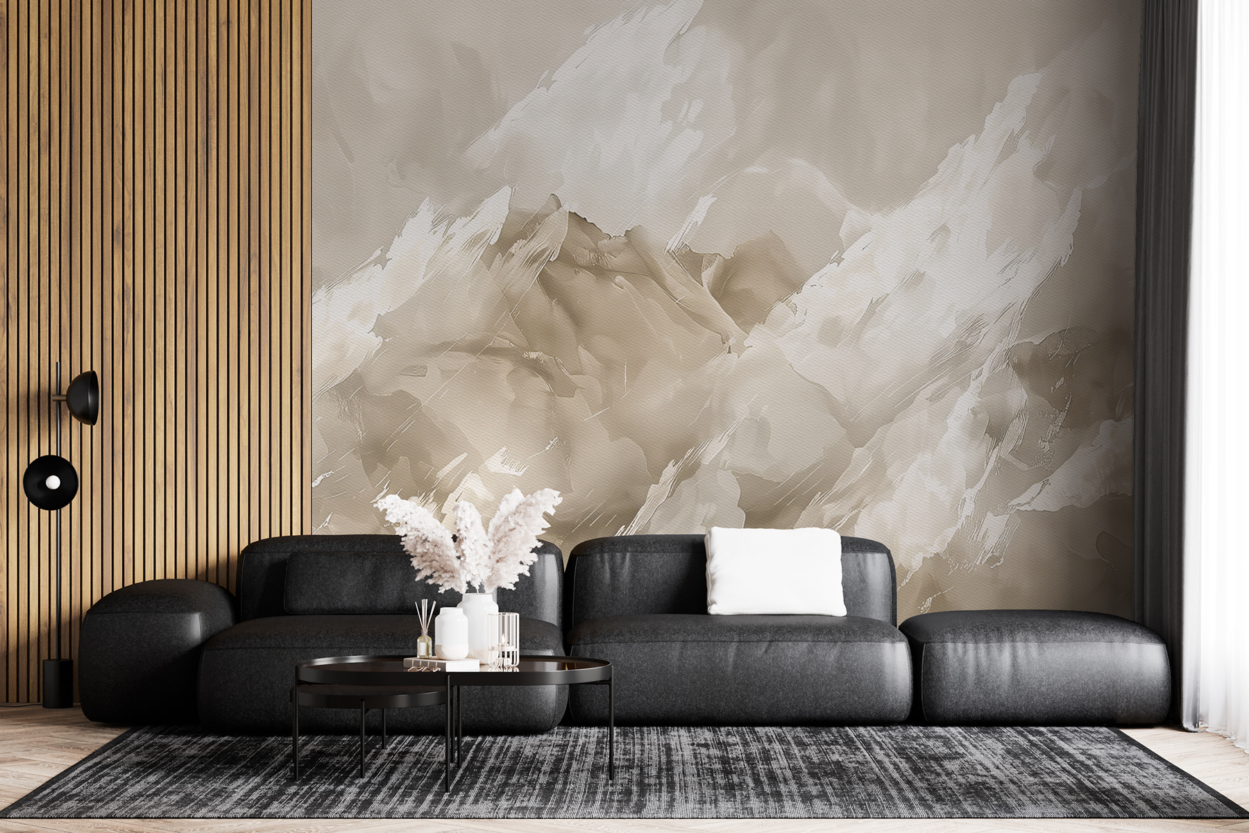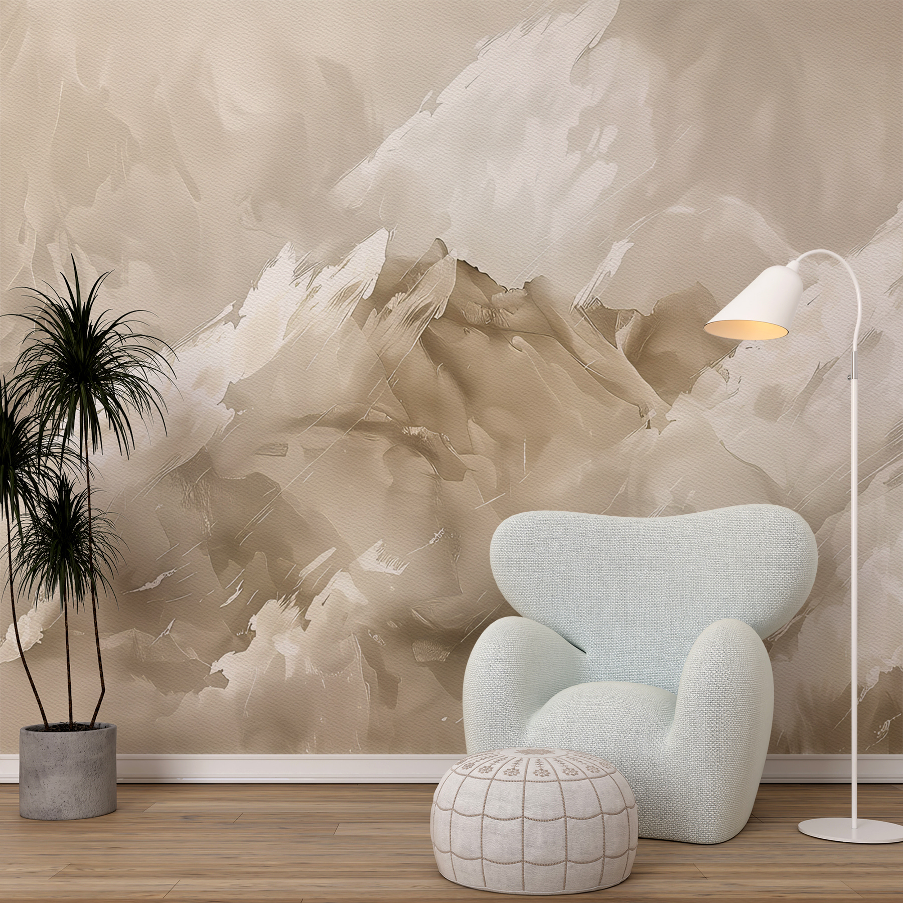 Je to také skvělý začátek konverzace – hosté se budou ptát na tento klidný, téměř abstraktní výjev na vaší zdi. Na těch tazích štětcem je něco, co vás nutí dívat se o něco déle a pokaždé najít nové tvary a vzory. Navíc je dostatečně univerzální, aby se hodil do téměř jakéhokoli prostoru – ať už chcete oživit obývací pokoj, ložnici, nebo dokonce elegantní domácí kancelář. Je to jako okamžité vylepšení vašich stěn, aniž byste museli zvednout štětec!