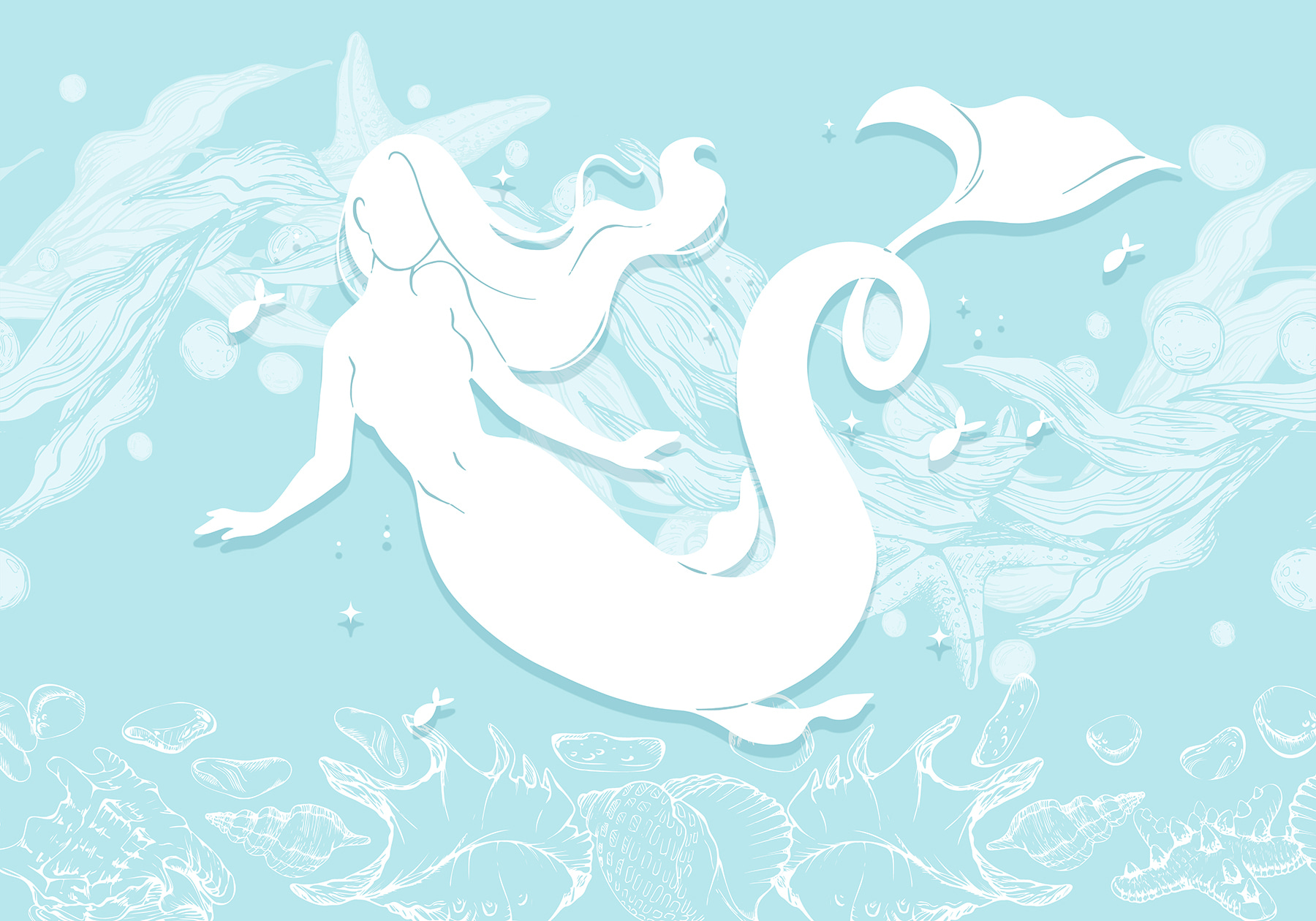 Fototapeta Bílá silueta mořské panny Fototapeta Bílá silueta mořské panny