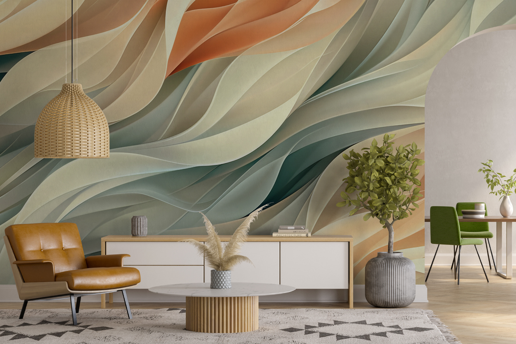 Vstupte do svého prostoru a ucítíte, jak se vám zvedá nálada. Tohle není jen designová tapeta; je to umělecké dílo, které promění prázdnou stěnu v něco výjimečného. Ty křivky a linie? Jsou ideální pro zachycení světla a vrhání měkkých, fascinujících stínů. Věřte mi, že se vás hosté nepřestanou ptát, kde jste ji vzali. Tak se do toho pusťte – dopřejte svému oblíbenému prostoru proměnu, která bude stejně elegantní jako klidná. Protože i vaše stěny si zaslouží trochu lásky!