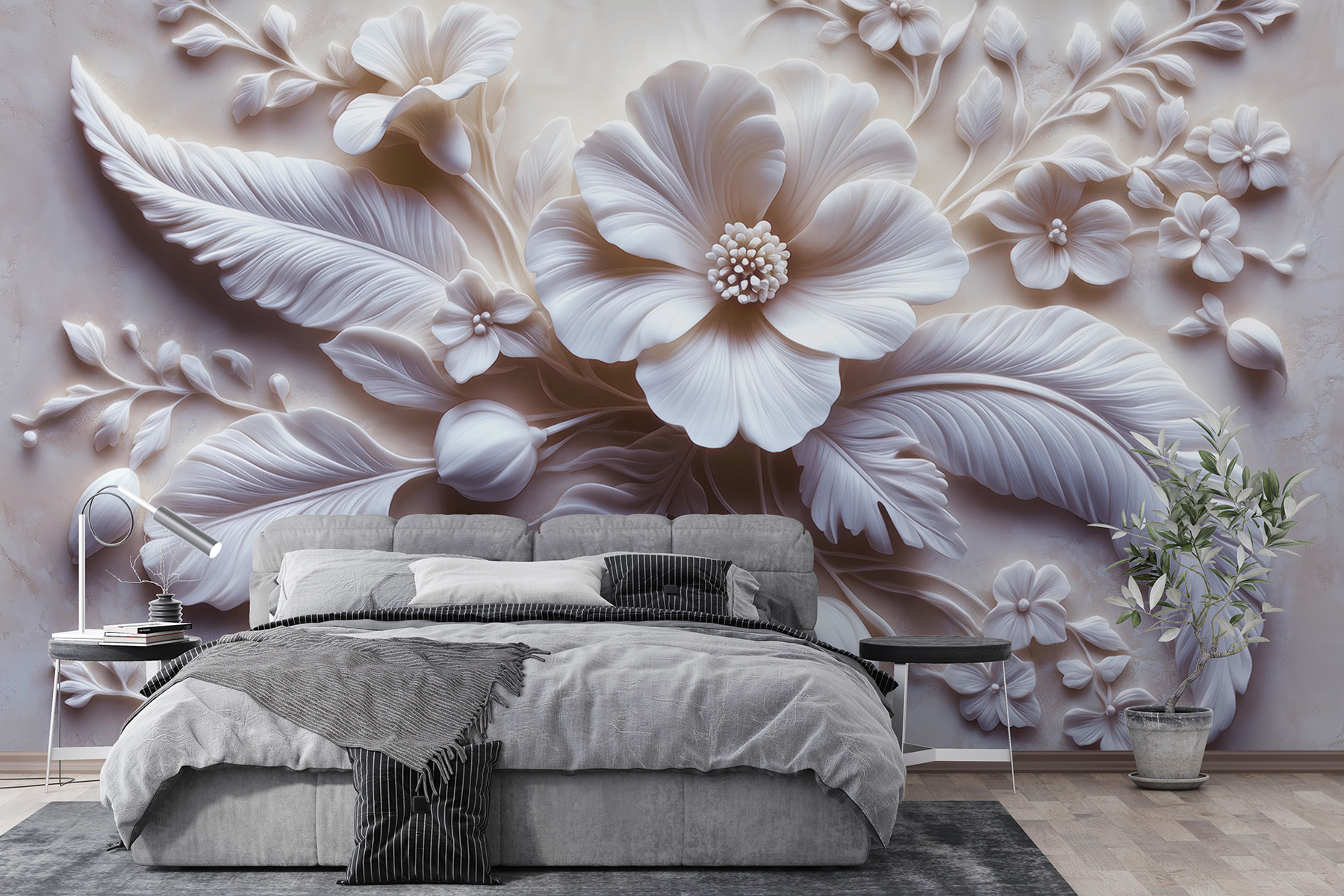 Proměna prostoru může být tak jednoduchá jako zavěšení nástěnné malby a tento design “Nástěnná malba Bílé květy a listy” to dokáže. Představte si, že vejdete do místnosti, kde krása přírody rozkvétá přímo na stěně a vybízí ke krásnému snění o zahradních piknicích a slunečných odpoledních.