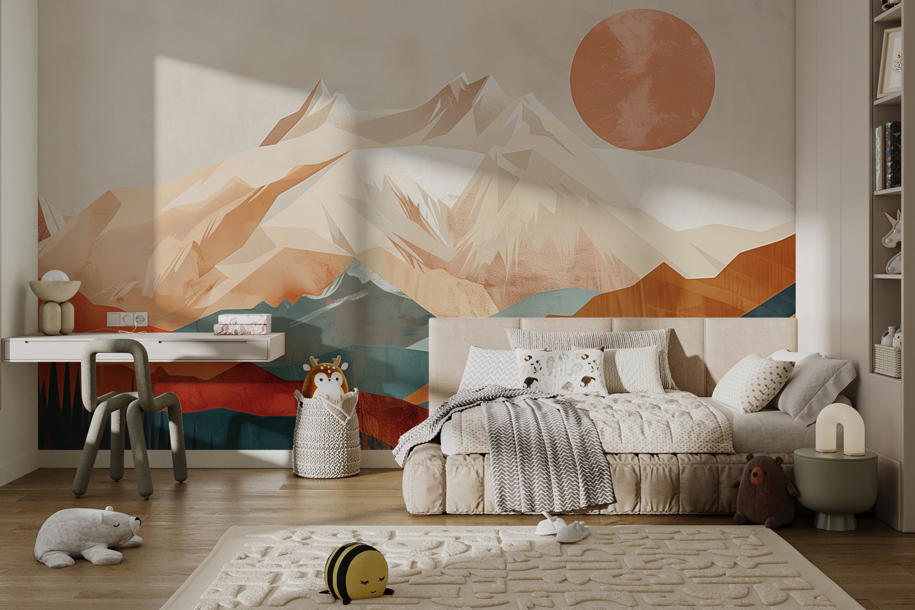Přáli jste si někdy, abyste se mohli každý den probudit s výhledem na hory? “Nástěnné malby w01358” vám to umožní! Je to jako vstoupit do abstraktního snu – tučné vrcholky, které jako by se dotýkaly nebe, hřejivé slunce vznášející se na mlhavé, klidné obloze… Už jen při pohledu na ni si můžete připadat jako na mini dovolené. Ideální pro každého, kdo miluje přírodu, ale chce mít moderní, uměleckou atmosféru. Představte si ho ve svém obývacím pokoji nebo dokonce v kanceláři – přináší venkovní prostředí dovnitř tak stylovým, uklidňujícím způsobem. Ideální pro vytvoření inspirativního prostoru s výhledem… bez všeho toho cestování!