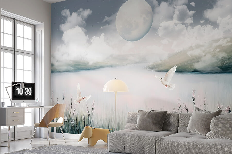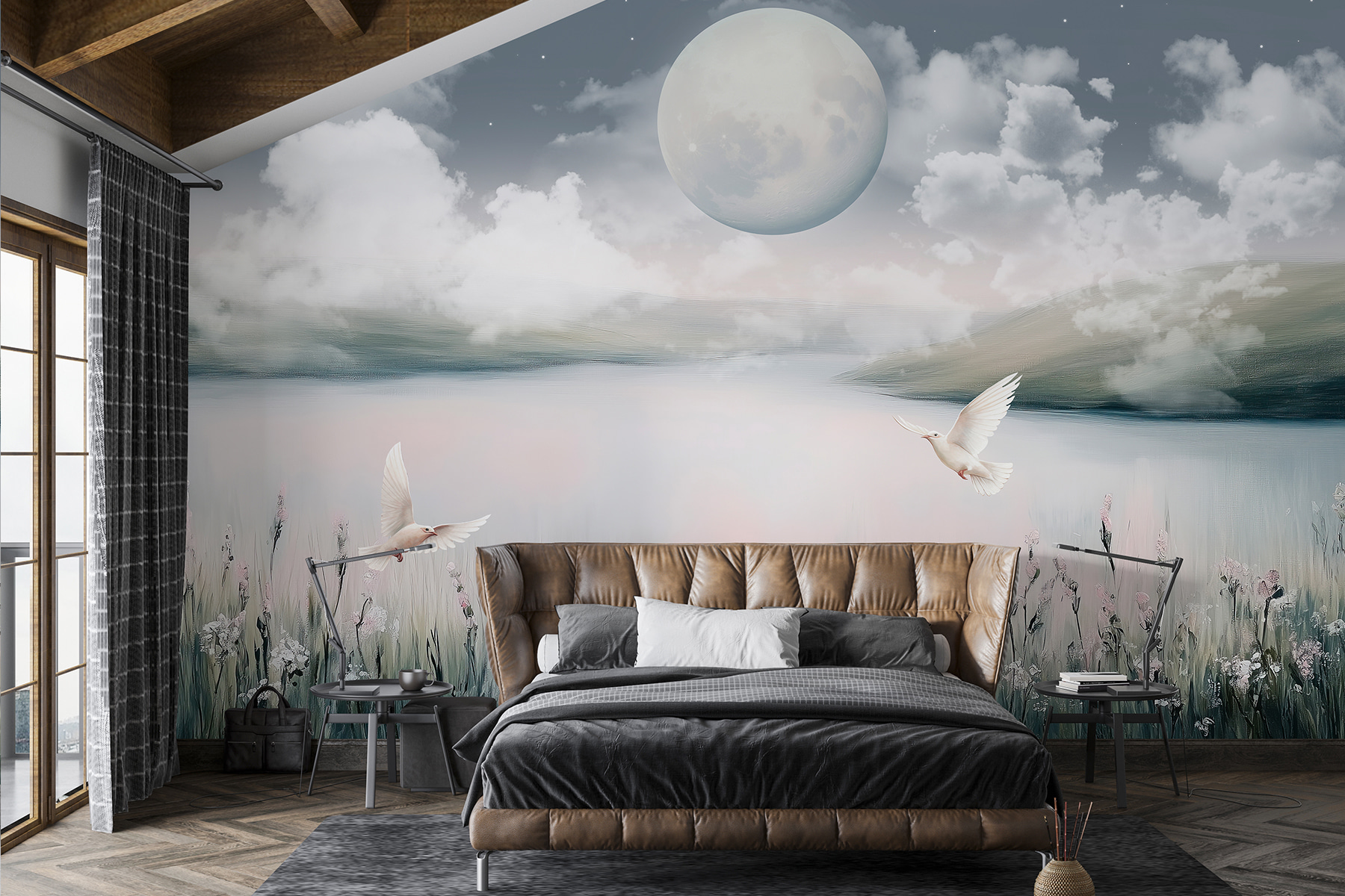 Představte si, jak odpočíváte na pohovce, v ruce šálek čaje a máte pocit, že se vznášíte v této klidné krajině. Rána jsou klidná, večery naprosto kouzelné. Je ideální pro každého, kdo miluje přírodu a chce mít nádech rozmarnosti. Bonus? Pastelové květiny a ptáci dodávají ten správný nádech kouzla, aniž by to bylo příliš přehnané. Rozhodně se hodí k rozhovoru při příští rodinné večeři! 🌙✨