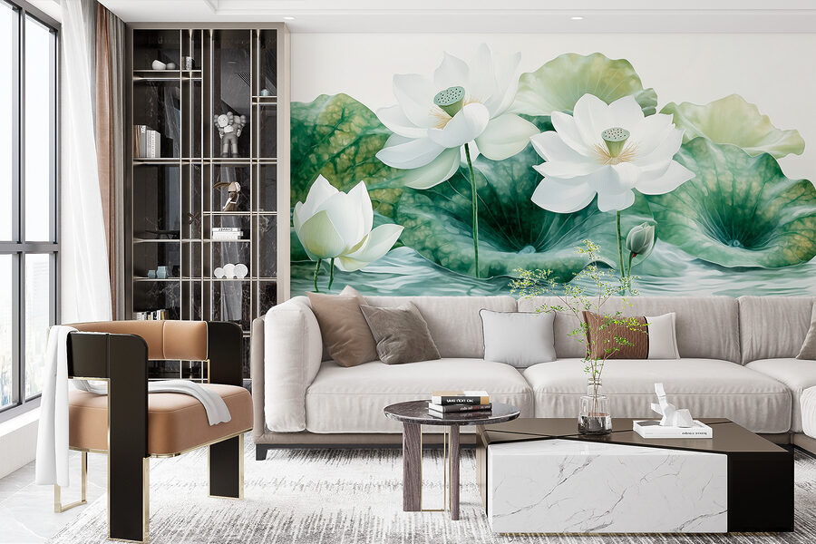 Ahoj! Podívejte se na tuto úžasnou fototapetu “Fototapeta w01448”. Představte si, že máte tuto krásu na zdi! Jsou na ní klidné bílé květy rozkvétající nad svěžími zelenými listy, to vše v jemném akvarelovém stylu, který je tak uklidňující. Ideální pro každého, kdo miluje dotek přírody v interiéru. Dokážete si to představit? Vejdete do místnosti a okamžitě se cítíte trochu víc v pohodě – skoro jako mini dovolená pro vaši mysl.