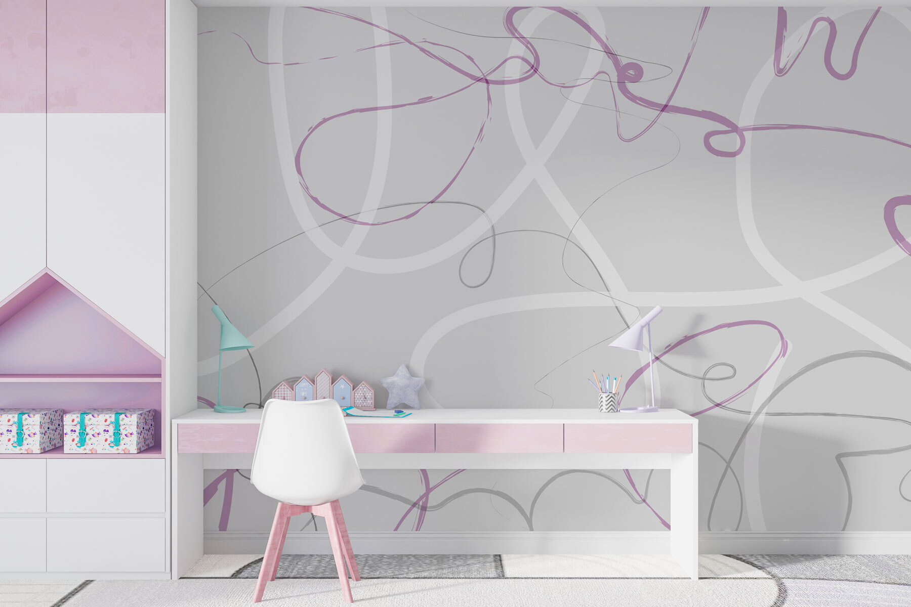 Přáli jste si někdy, aby vaše stěny mohly sloužit jako plátno? Seznamte se s “Fototapeta w01455v2” – součástí naší kolekce designových tapet. Tahle je jako moderní čmáranice na výtvarném výletě! Jemné proplétající se linie v uklidňujících odstínech fialové a šedé tančí na bílém pozadí a vytvářejí scénu, která působí hravě a zároveň sofistikovaně. Vážně, je to jako nechat v pokoji volného ducha se štětcem. Představte si, že přijdete domů k této nástěnné malbě – přivítá vás umělecké dílo, které váš prostor zahalí do kreativity a klidných vibrací. Je ideální pro každého, kdo chce svému prostoru dodat trochu moderního rozmaru, ať už jde o útulný obývací pokoj, nebo elegantní kancelář. Navíc je to naprostý začátek konverzace – očekávejte spoustu momentů typu “Kde jsi to vzal?!”.