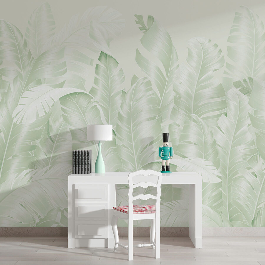 Proměňte svůj prostor v oázu klidu díky této okouzlující nástěnné malbě se svěží skupinou listů na jemném bílém pozadí. Představte si, že pokaždé, když vejdete do místnosti, vstoupíte do tropického prostředí. Jemná zelená a bílá vytvářejí uklidňující atmosféru, která je ideální pro odpočinek po dlouhém dni. Je to jako mít kus přírody přímo na stěnách, díky čemuž se místnost zdá být větší a příjemnější. Přátelé se budou divit, že máte ukrytou tajnou zahradu. Navíc se krásně hodí k jakémukoli stylu zařízení. Představte si, že zde popíjíte kávu obklopeni klidem přírody – čiré blaho!