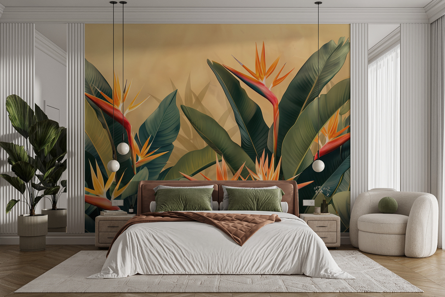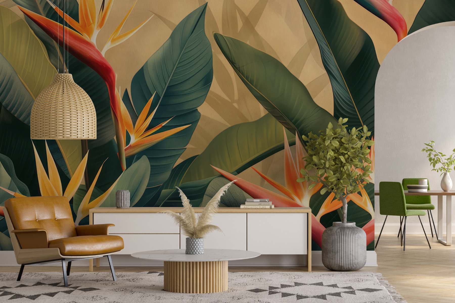 Proměňte každou místnost v tropický ráj díky této úžasné nástěnné fototapetě s živými rajskými ptáky. Sytě zelené a ohnivě oranžové barvy vytvářejí živé pozadí a okamžitě zvedají náladu. Představte si, že vstoupíte do svého obývacího pokoje a budete si připadat jako na sluncem zalitém tropickém pobytu. Je to jako přenést kousek přírody dovnitř – ideální pro příjemná odpoledne s knihou nebo třeba s drzým koktejlem v ruce. Navíc je to skvělý začátek konverzace. Hosté se budou ptát, kde se vzala ta úžasná nástěnná malba, a vy můžete s úsměvem říct, že je to tajemství vašeho elegantního útěku!