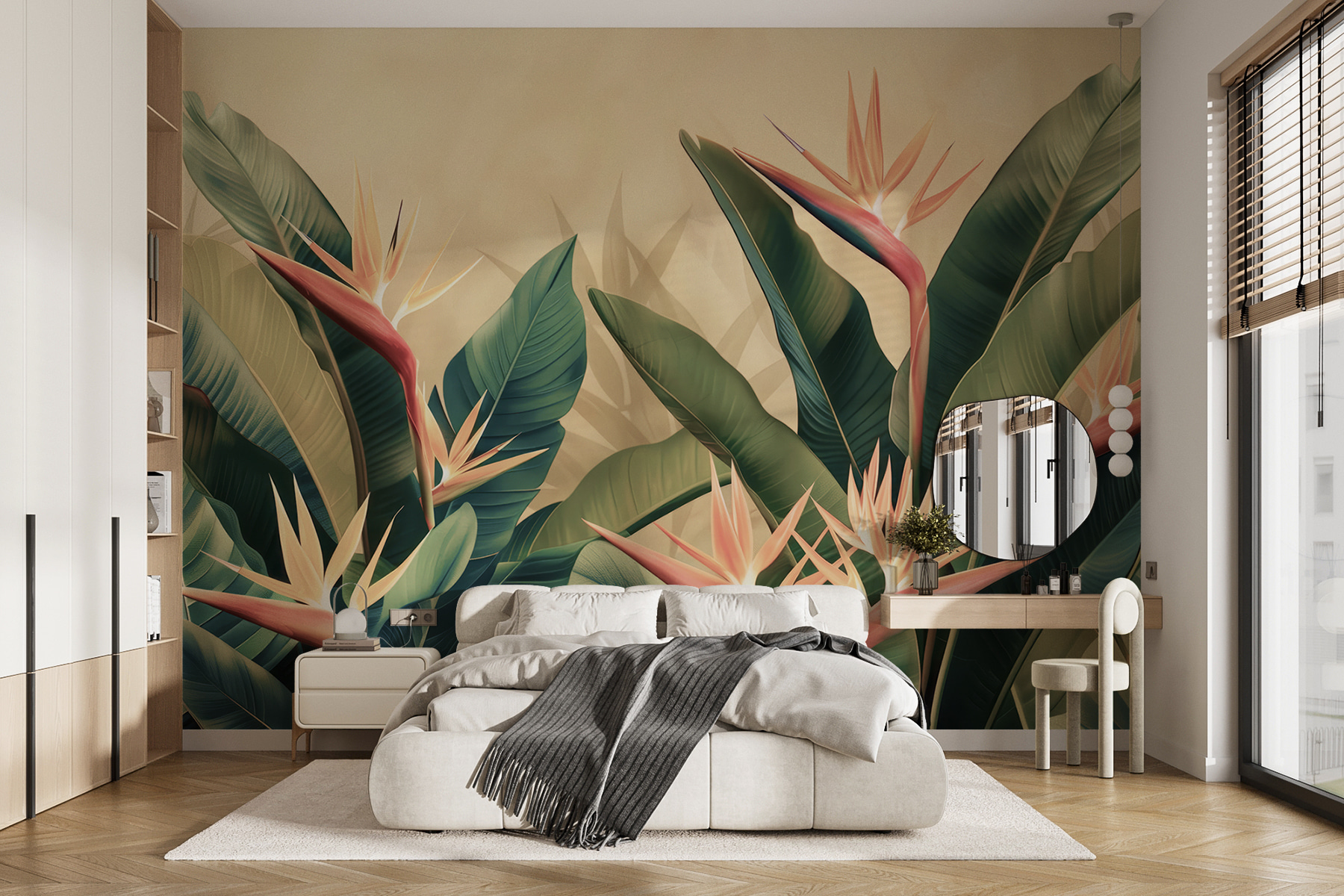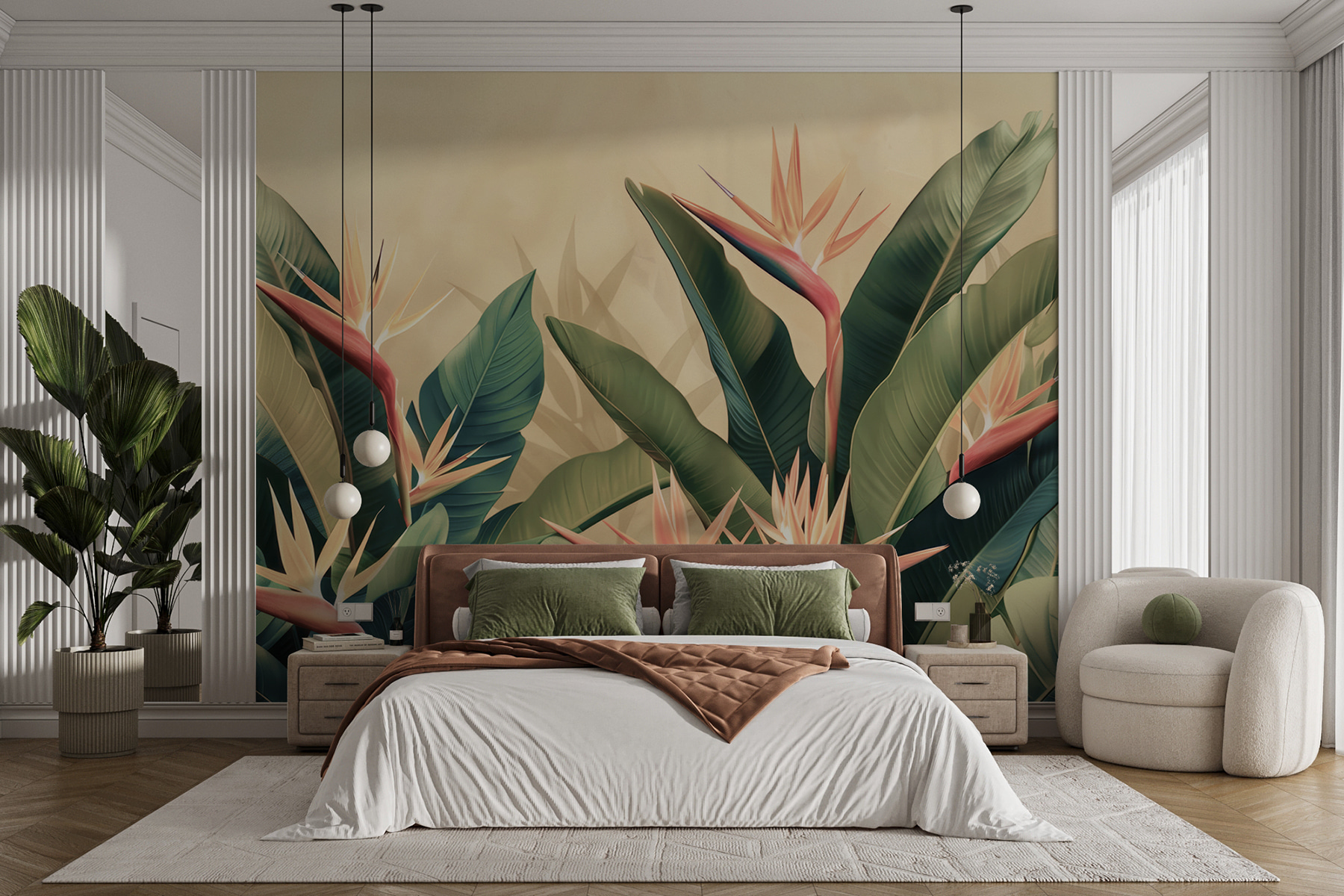 Představte si, že vejdete do svého obývacího pokoje a okamžitě se cítíte, jako byste se ocitli v tropickém ráji – letenky nejsou potřeba! S nástěnnou fototapetou w01484v1 tyto svěží zelené listy a zářivé květy rajských ptáků prakticky vystupují ze zdi. Není to jen dekorace, je to únik. Ideální pro každého, kdo sní o útěku na ostrov, i když je zavalen pracovními e-maily. Listy jsou tak živě detailní, že byste přísahali, že slyšíte šumění vánku… a kdo ví, možná dokonce dostanete chuť na piña coladu. Je to jako přenést kousek krásy přírody do interiéru – bez brouků! Pozadí této nástěnné malby má hloubku, která vytváří téměř 3D efekt a dodá vašemu prostoru osvěžující příval života. Věřte mi, že díky ní budou vaše rána o něco jasnější a večery uvolněnější.