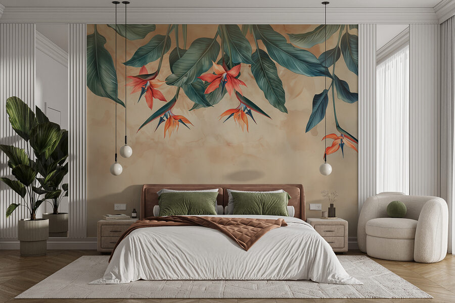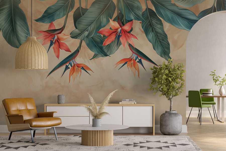 Přemýšlíte o tom, že byste místnosti dodali pořádný wow efekt? Podívejte se na tuto úžasnou nástěnnou malbu “Fototapeta w01485.” Má snovou tropickou atmosféru se svěžími zelenými listy a jasnými květinami, díky nimž se budete cítit, jako byste právě vstoupili do útulné džungle. Nedokážete si představit, jak by to zcela změnilo prostor – přidalo trochu přírody, náznak dobrodružství? Ideální pro každou stěnu, která by potřebovala dávku života a barev. Ať už se jedná o stěnu v obývacím pokoji nebo svěží pozadí v ložnici, tato nástěnná malba působí jako malý kousek ráje přímo u vás doma. A vzhled dřeva? Dodává rustikální, hřejivý pocit, který je prostě lákavý. Je to víc než jen obklad stěny… je to celá nálada.