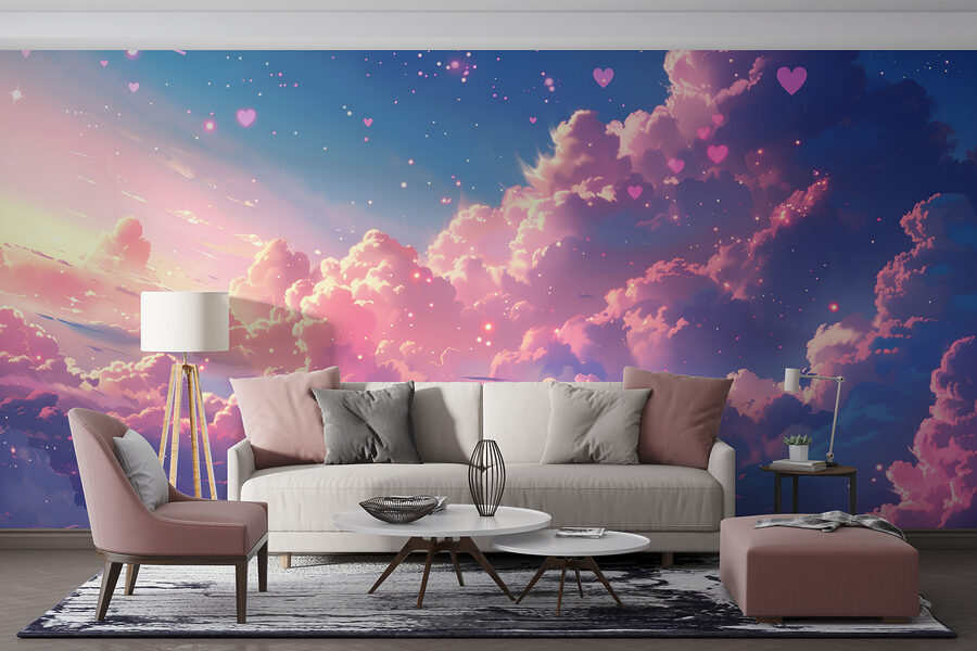 Představte si, že se podíváte vzhůru a uvidíte oblohu plnou zasněných, růžově zbarvených mraků, které vypadají jako z pohádky – tato nástěnná malba “Fototapeta w01487” je takovým kouzelným výjevem zachyceným na vaší zdi. Jako byste si domů přinesli kousek nebe z cukrové vaty. Ideální pro ty, kteří milují kapku rozmarnosti a nádech denního klidu. Jemné modré a růžové barvy spolu splývají a v každé místnosti působí útulně a zároveň osvěžujícím dojmem. Děti budou zbožňovat ozdoby ve tvaru srdíček a na příštím setkání s vámi se může stát předmětem konverzace. Není to jen nástěnná malba, je to malý kousek štěstí přímo na vaší zdi.