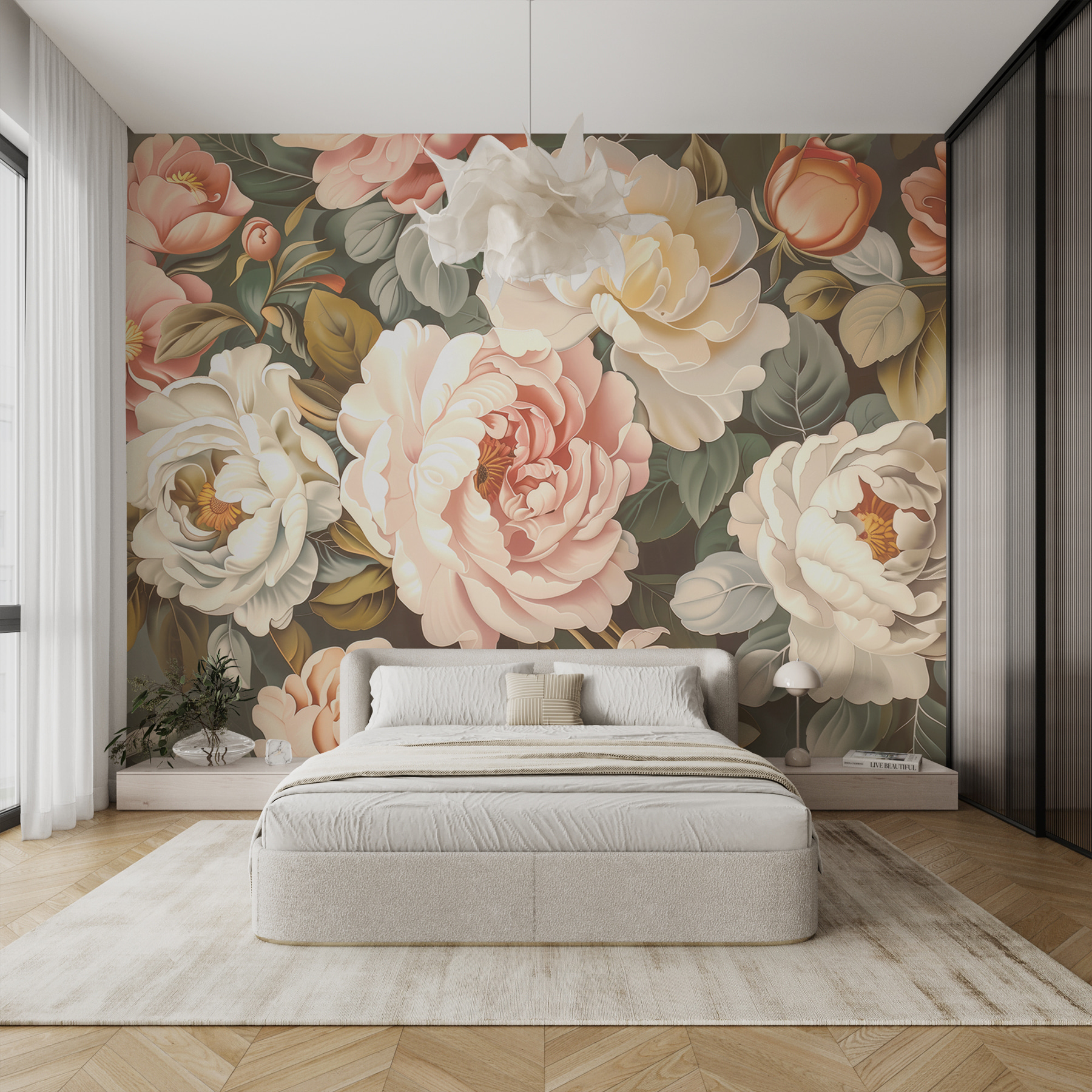 Proměňte jakoukoli místnost pomocí “Věčného rozkvětu nadčasové krásy”. Tato nástěnná malba není jen uměleckým dílem, je to botanický únik. Představte si, že při každé procházce vstoupíte do svěží zahrady. Ty nádherné pivoňky, všechny nafouklé a hýřící barvami, působí téměř, jako by se natahovaly k rozhovoru. Je to jako květinové objetí na vašich stěnách, které přináší teplo a radost. Tato nástěnná malba, ideální do útulného kavárenského koutku nebo sluncem zalitého obývacího pokoje, šeptá pozvání k odpočinku a dýchání. Kdo by takovou atmosféru nechtěl? Není to jen dekorace, je to zážitek, který čeká, až se stane.