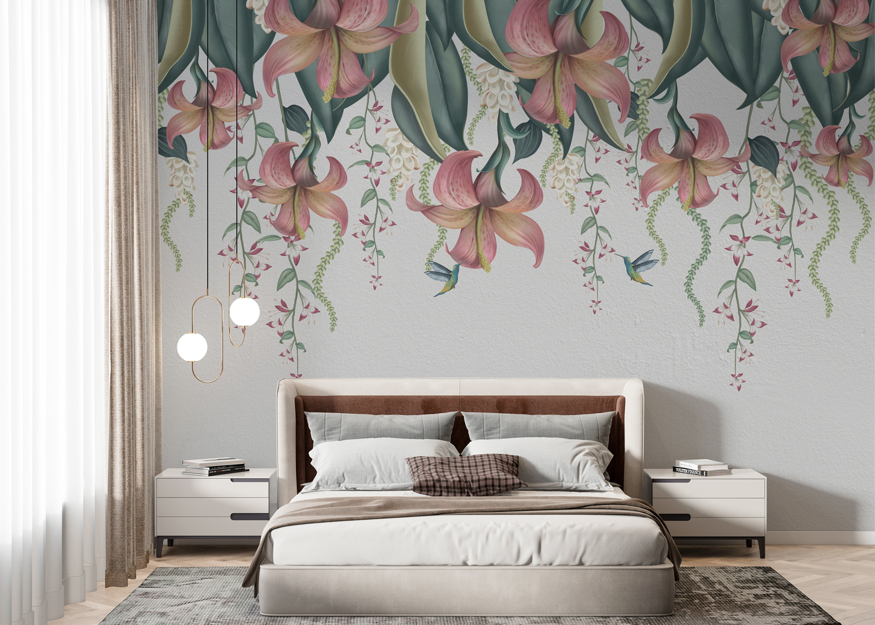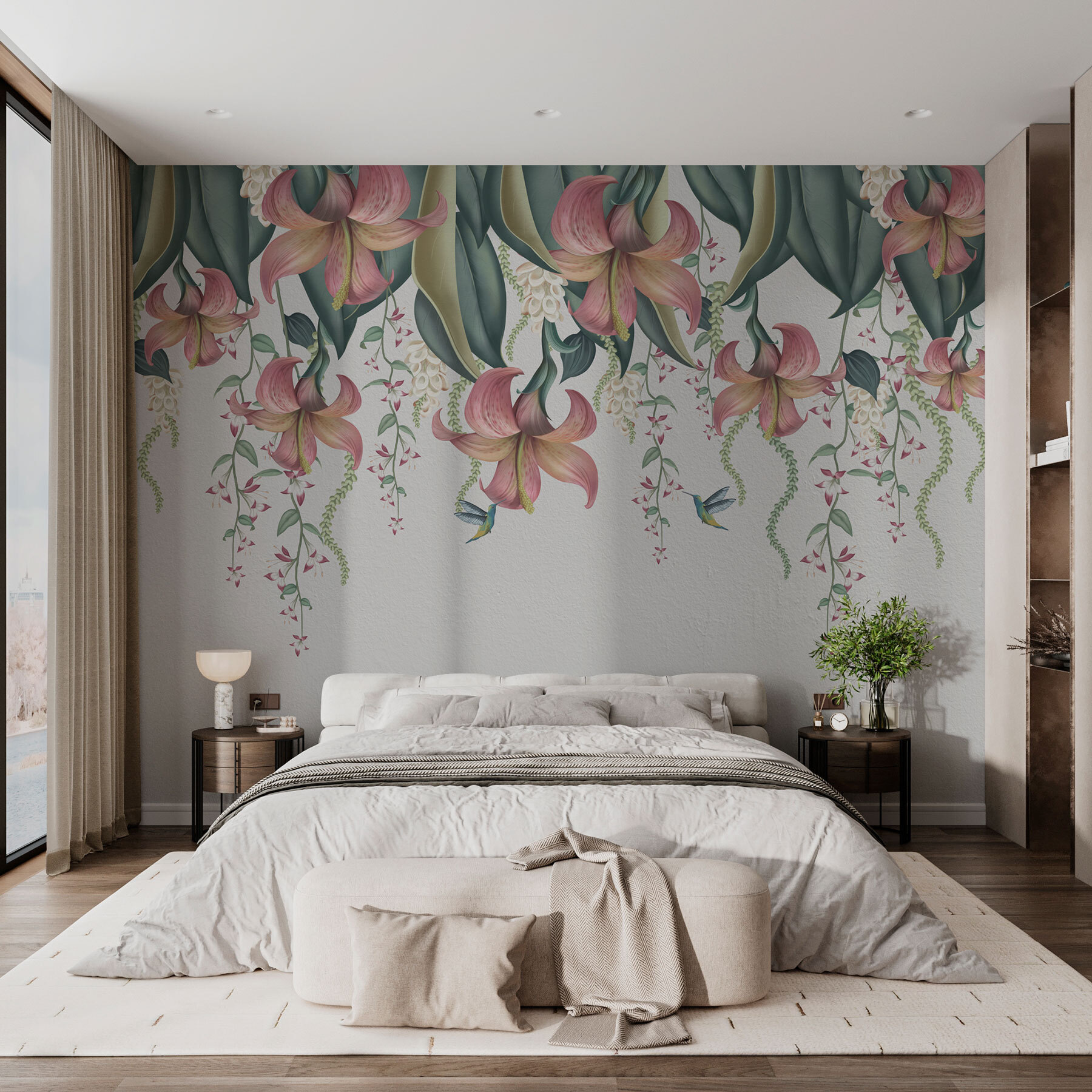 Proměňte jakýkoli prostor pomocí nástěnné malby “Elegantní kaskáda květinového umění”, na níž se po stěně roztančí nádherné květy. Představte si, že se probouzíte s živými květy a jemnými liánami, které do vašeho domova přivolávají pocit klidu a přírody. Představte si útulné večery strávené pod tímto květinovým baldachýnem, s přáteli, kteří si povídají a popíjejí čaj, nebo třeba jen vy, jak nasáváte krásu s dobrou knihou. Díky živým barvám a okouzlujícím detailům je těžké se neusmívat. Je to jako přenést tajnou zahradu do interiéru – kdo by to nechtěl? Ideální do obývacího pokoje nebo vlastně kamkoli, kde chcete mít příchuť kouzla přírody!