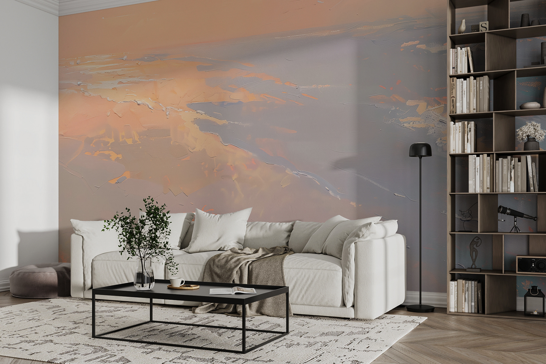 Představte si jeden z těch dokonalých západů slunce – takový, který vás donutí zastavit se a prostě… dýchat. Obraz “Sunset Hues Dance on Water” zachycuje tuto atmosféru a rozstřikuje jemné akvarelové kouzlo po vaší zdi. Je to jako vstoupit do snění; možná se přistihnete, že čekáte na šumění vzdálených vln (ale bohužel je ticho). Tato nástěnná malba je o vytvoření klidného úniku přímo ve vašem obývacím pokoji – nebo kdekoli, kde potřebujete cákance klidu. Skvěle se hodí pro snílky, lovce západů slunce nebo kohokoli, kdo doma potřebuje trochu víc zenu.