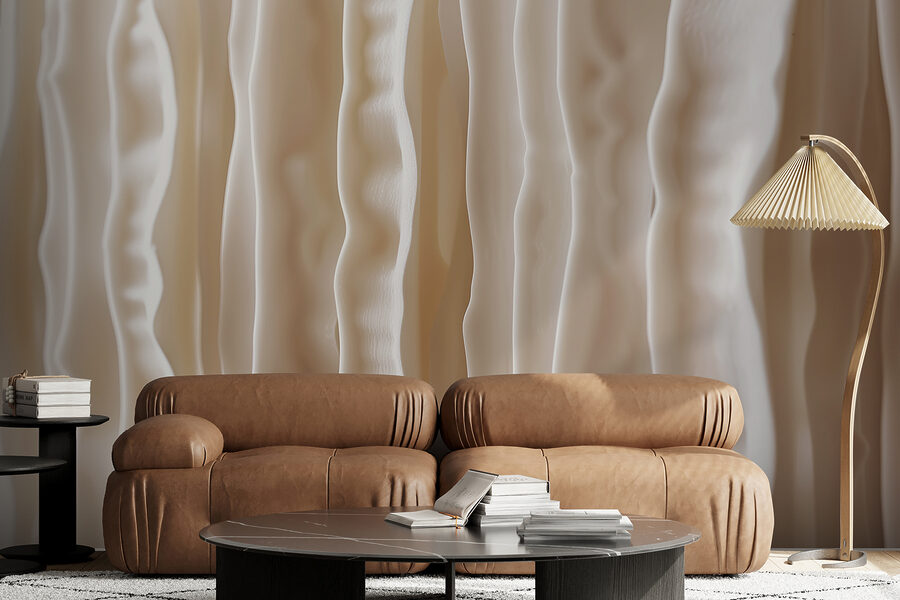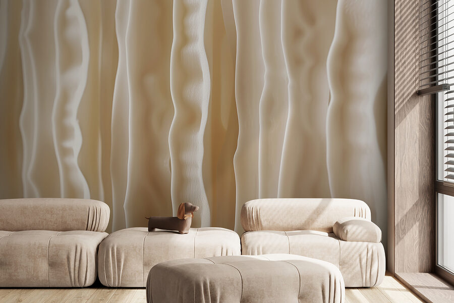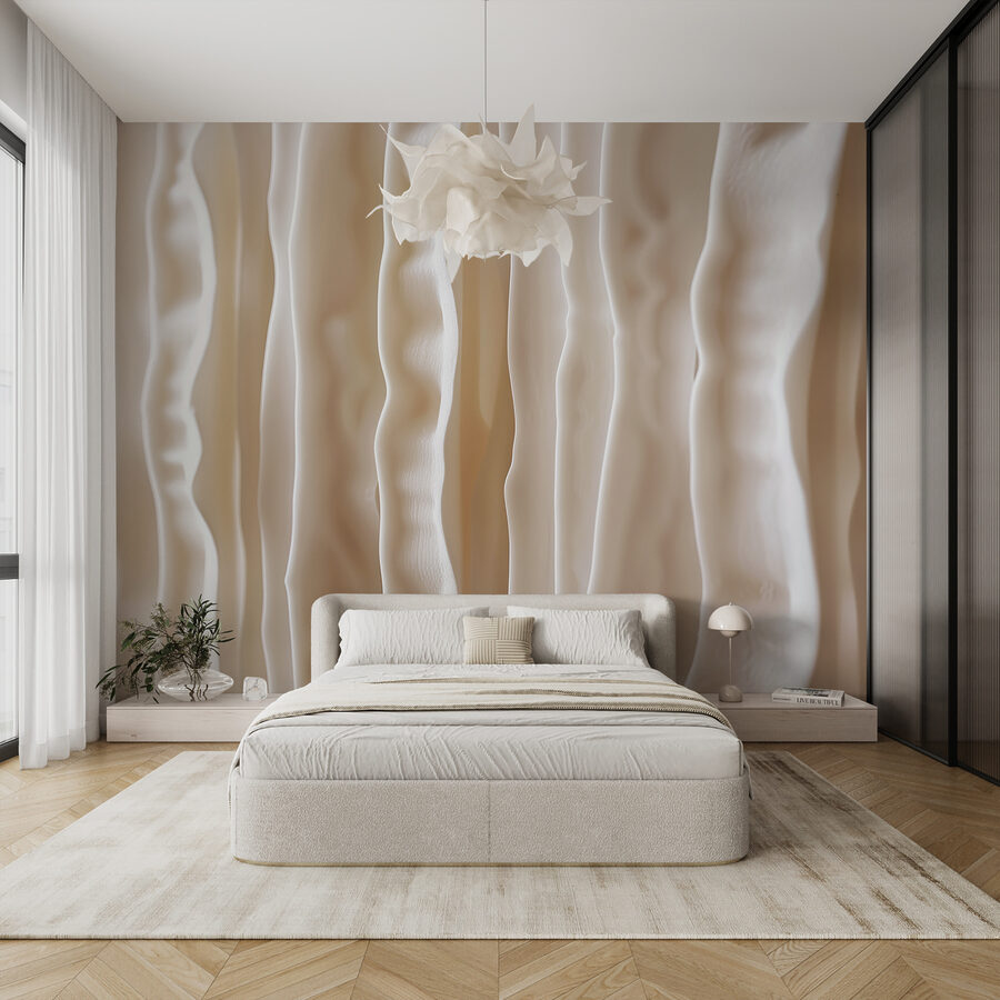 Představte si, že vejdete do místnosti, jejíž stěny jako by šeptaly “relaxujte”. Nástěnná malba “Krémové vlny” není jen obkladem stěny, ale vybízí ke snění. Díky měkkým, splývavým texturám máte pocit, že proplouváte nadýchaným mořem mraků – nebo snad šlehačkou? Je ideální pro dodání nádechu klidu a elegance, je jako vizuální objetí pro váš prostor. Představte si, jak popíjíte ranní kávu obklopeni touto klidnou kulisou – a najednou se vám pondělky nebudou zdát tak špatné.