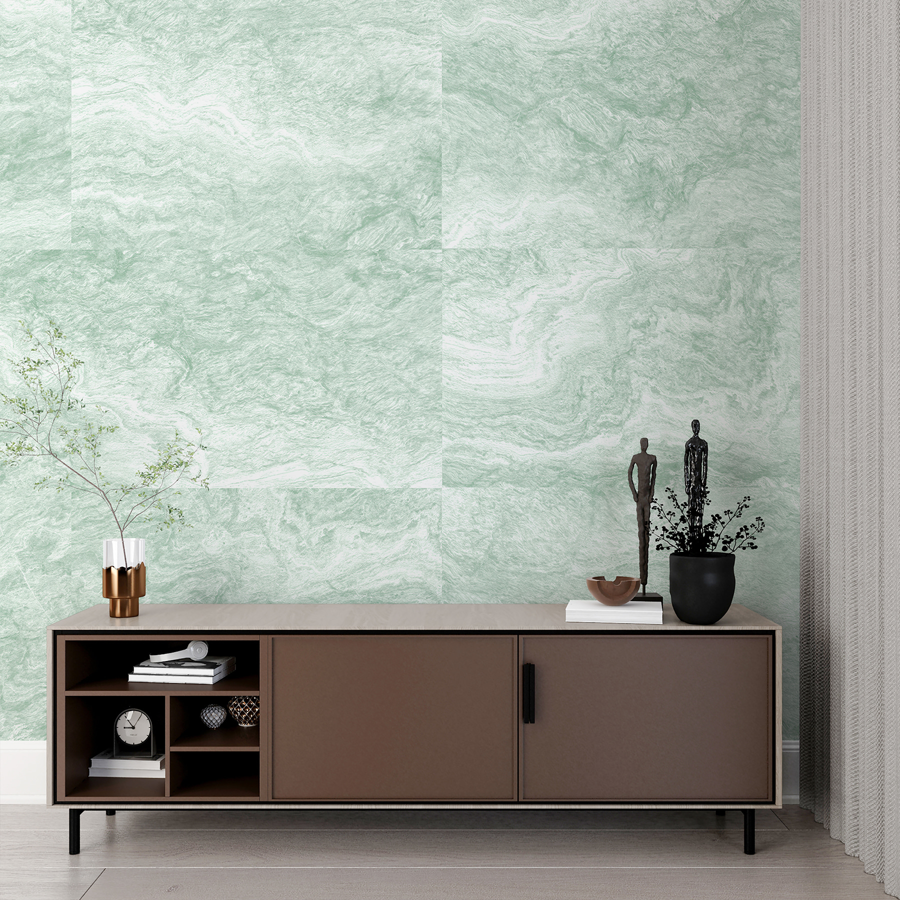 Představte si jemný vánek, který víří vaším pokojem a šeptá vám klid. Přesně takový je pokoj “Serenity in Green Marble Waves”. Tato nástěnná malba s jemnými, plynulými liniemi vnáší do interiéru klid a dotek přírody. Je ideální pro každého, kdo miluje kombinaci abstraktního umění a zemitých vibrací. Je to jako zahalit své stěny do klidného lázeňského dne – bez plátků okurek. Snadno se aplikuje, jako objetí pro váš prostor. Kdo by řekl, že stěny mohou vydechovat? Ponořte se do své vlastní oázy pouhým sloupnutím a nalepením.