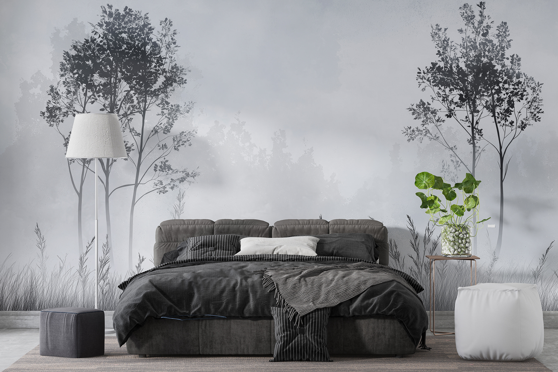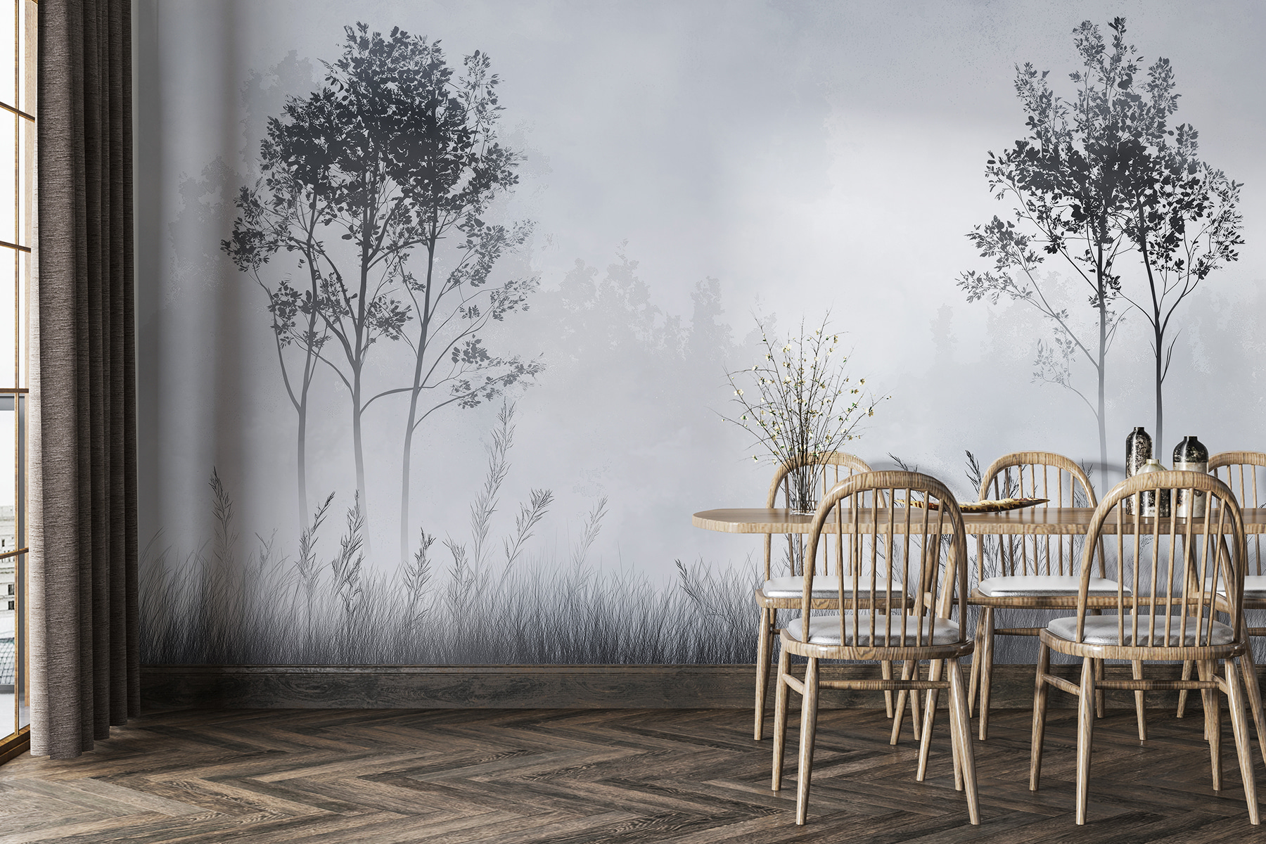 S touto nástěnnou malbou mlhavé krajiny proměníte každou místnost v klidné útočiště. Představte si jemnou mlhu, která se převaluje přes měkkou trávu a křehké stromy a vytváří snovou atmosféru, která je ideální pro snění nebo odpočinek po dlouhém dni. Tlumené tóny vybízejí ke klidu, takže je ideální pro útulné prostory, jako je čtecí koutek nebo klidná ložnice. Jen si to představte: popíjení čaje, obklopeni přírodou, s jemným vánkem v hlavě. Je to jako přenést venkovní prostředí dovnitř – bez zablácených bot! Tato nástěnná malba, která je dokonalou kulisou pro chvíle, kdy se svět zdá být příliš hektický, našeptává klid.